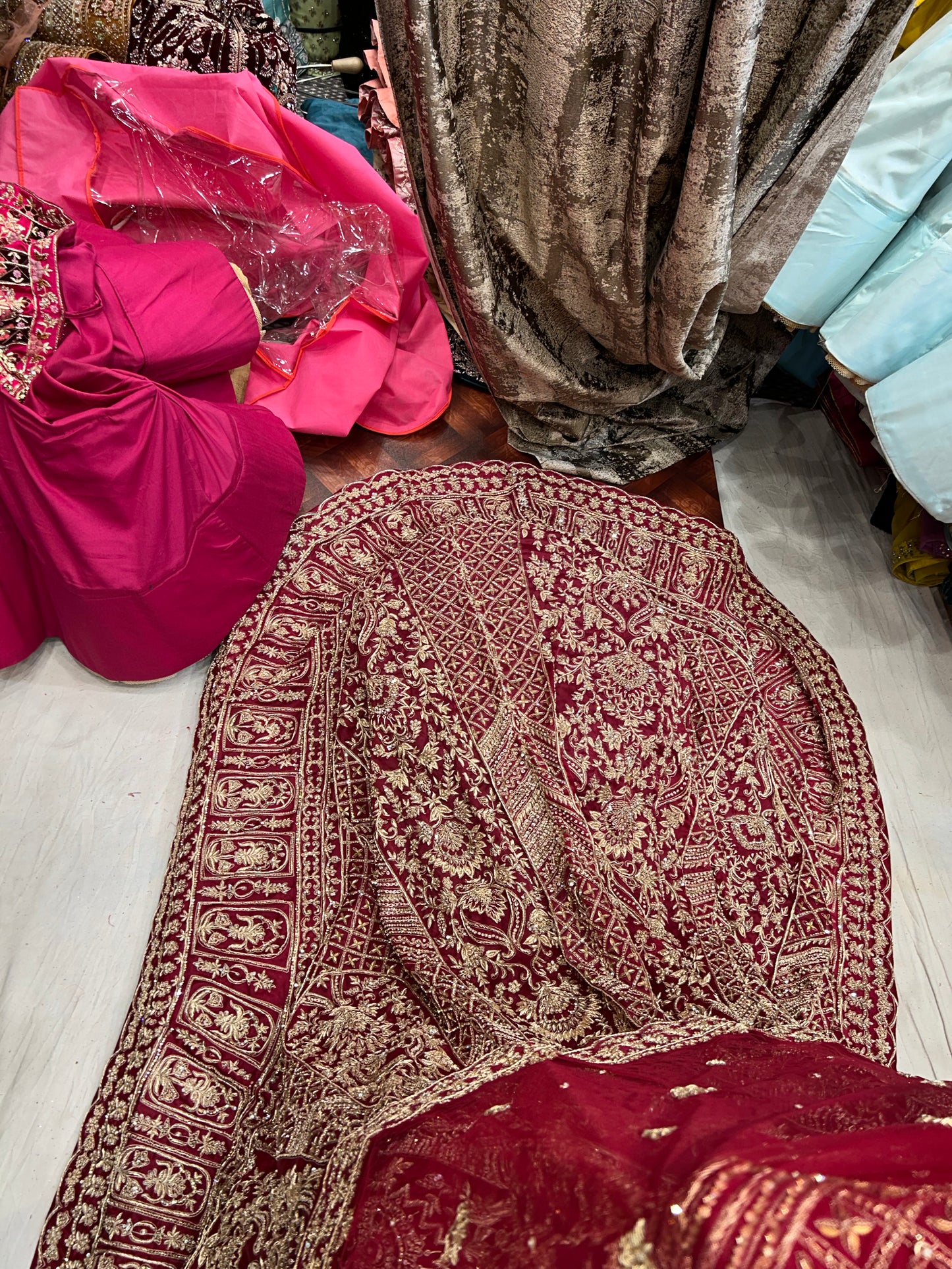 Designer jhumka Maroon bridal lehenga ( happy customer)
