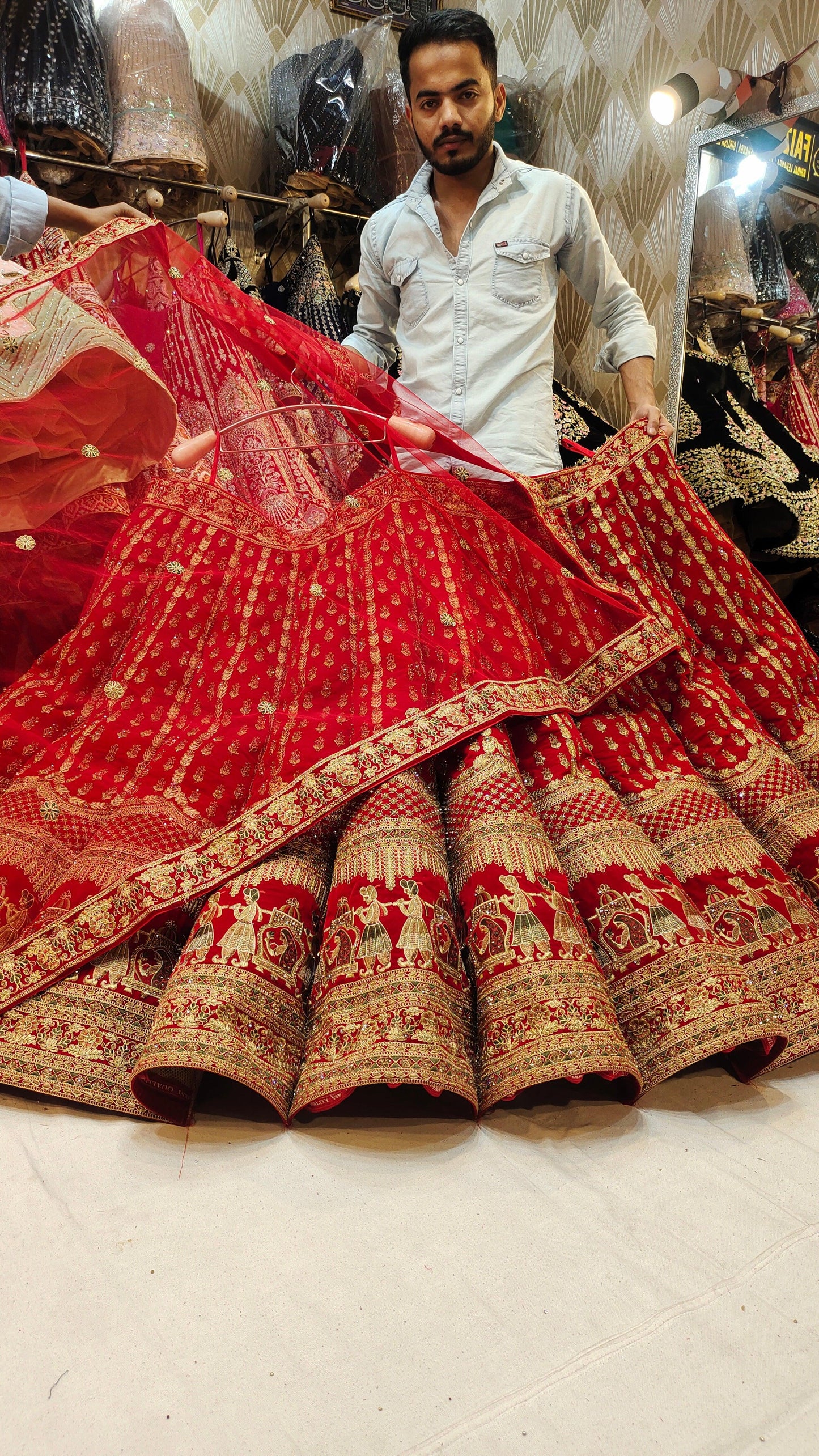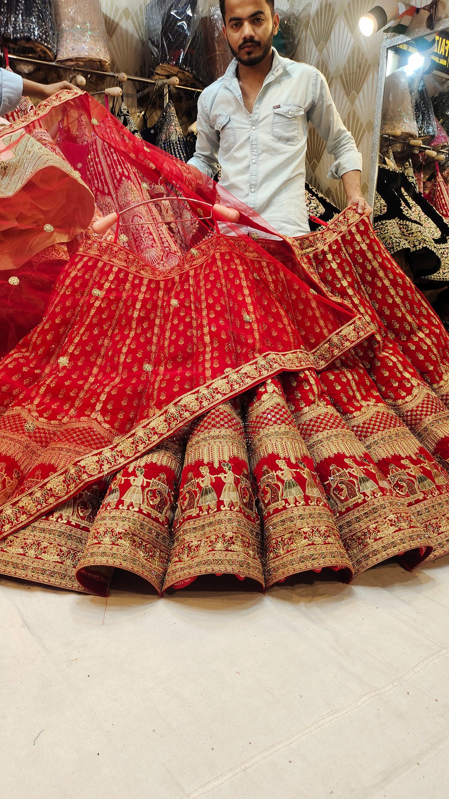 Royal Red Bridal Lehenga Double tail Dupatta with Dupatta happy customer
