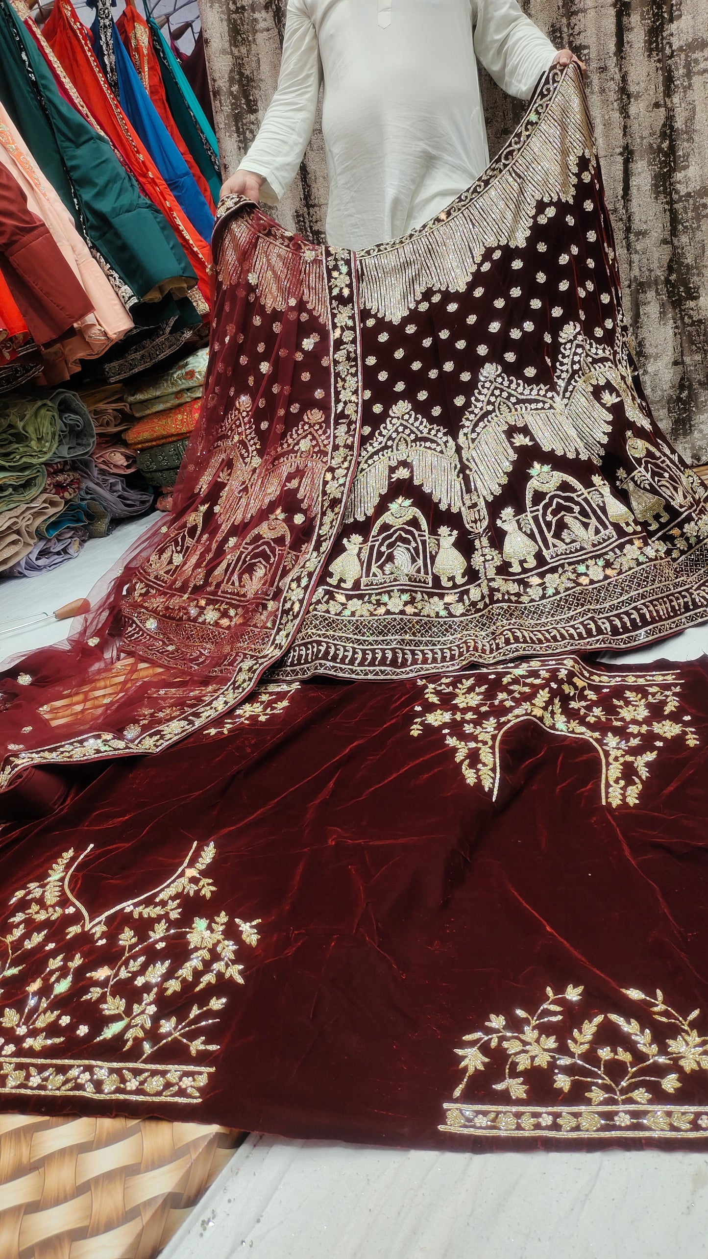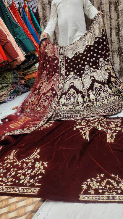 Designer jhumka Maroon bridal lehenga ( happy customer)