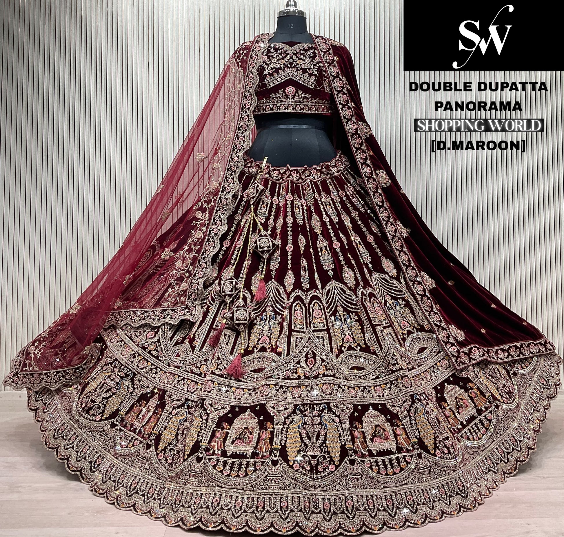 Elegant Dark maroon Double duptta Doli Barat Bridal Lehenga