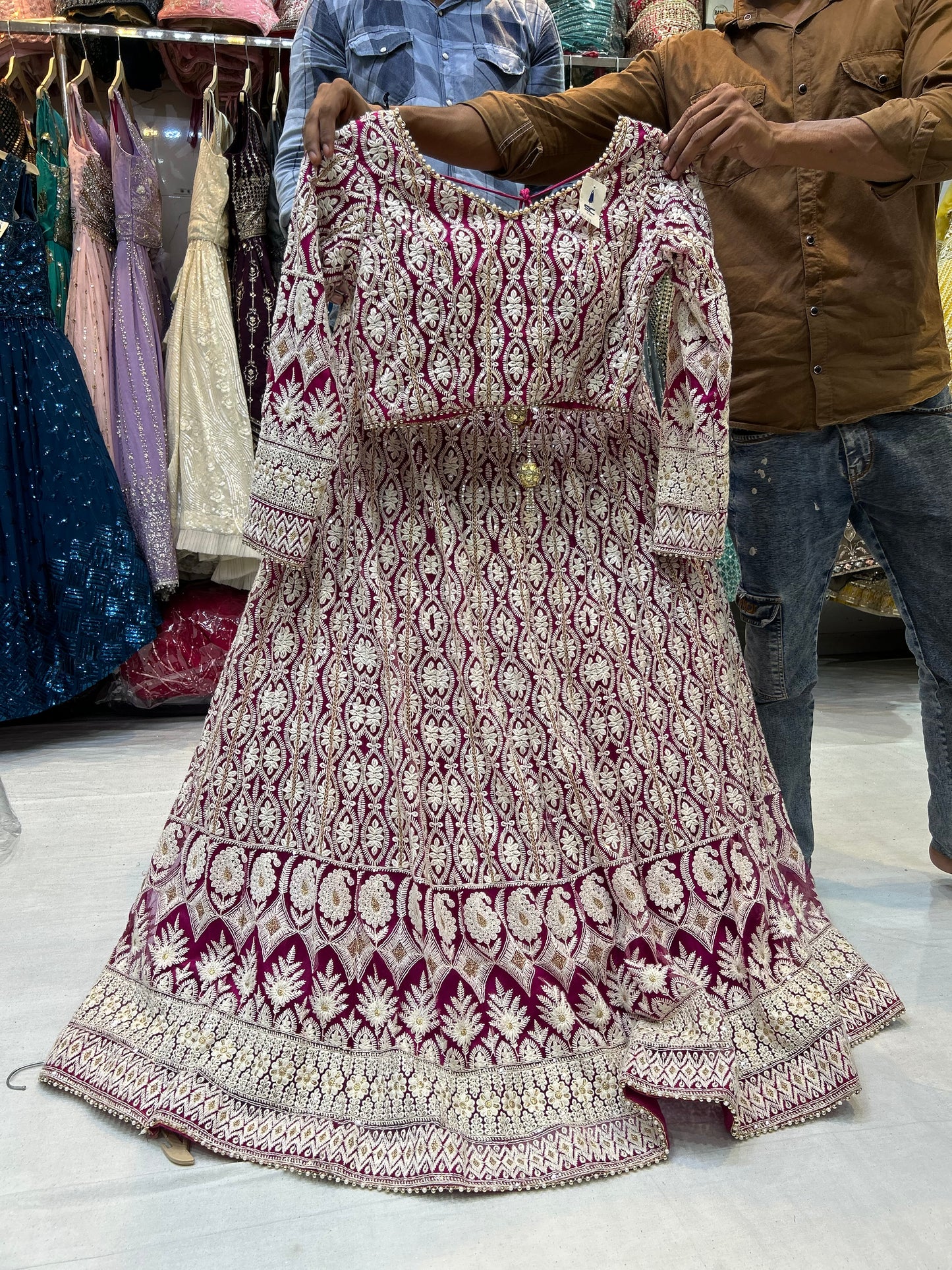 Designer jhumka Maroon bridal lehenga ( happy customer)