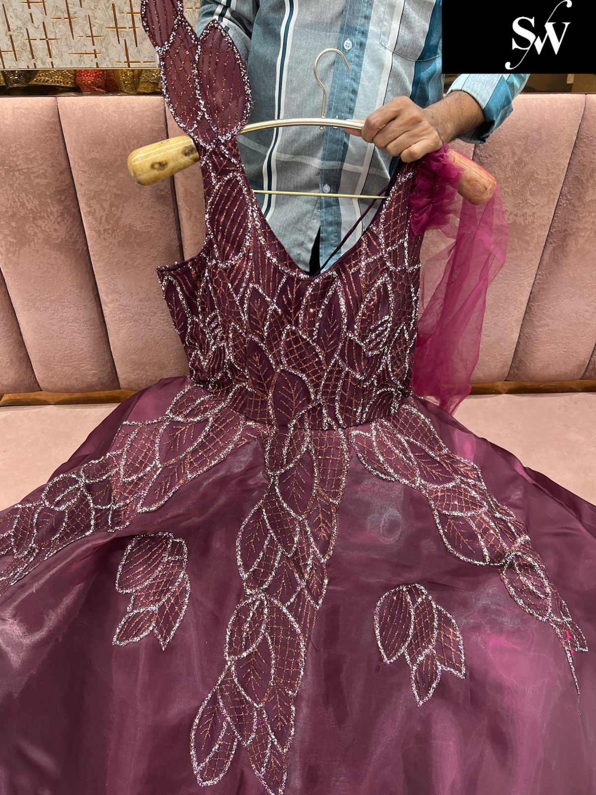 Discover elegance with our Designer Gown Collection, perfect for every special occasion. These free-size gowns are Designed to enhance your wardrobe, gown features intricate embroidery, luxurious fabrics, and a flattering silhouette, making it an ideal choice for weddings, cocktail parties, receptions, and festive celebrations.