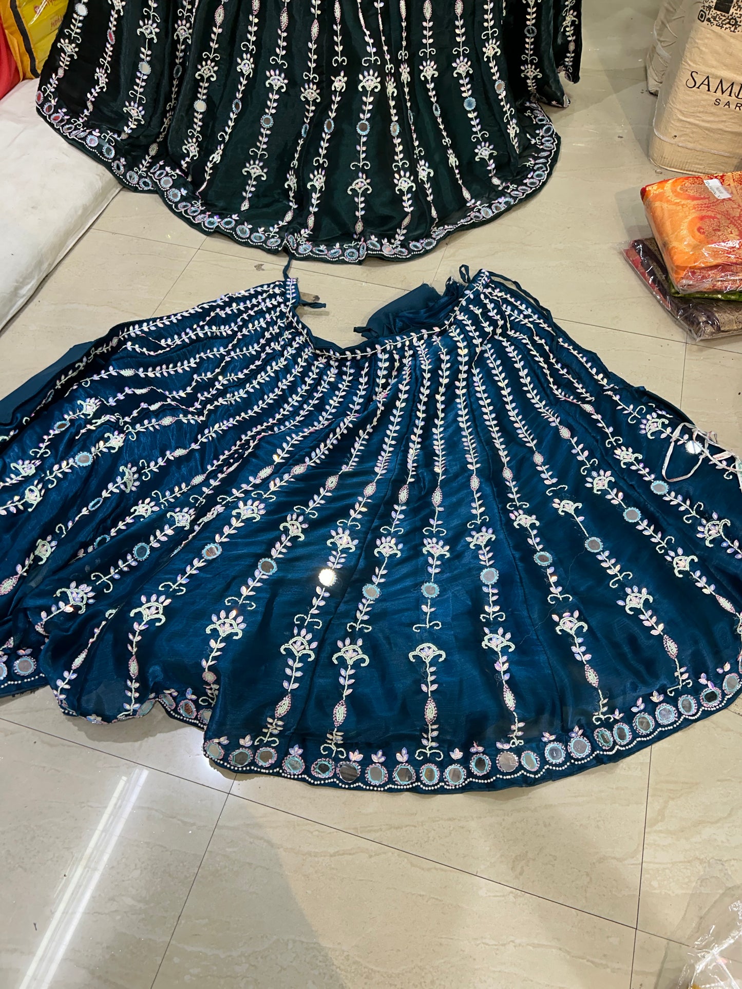 Discover elegance with our Designer Lehenga Collection, perfect for any occasion. These free-size lehengas are thoughtfully designed to accommodate all body types and can be customized to suit your unique style. Crafted to elevate your wardrobe, each lehenga set includes a semi-stitched skirt, unstitched blouse fabric (choli), and a matching chunni (dupatta), making it an ideal choice for weddings, festivals, and special celebrations.