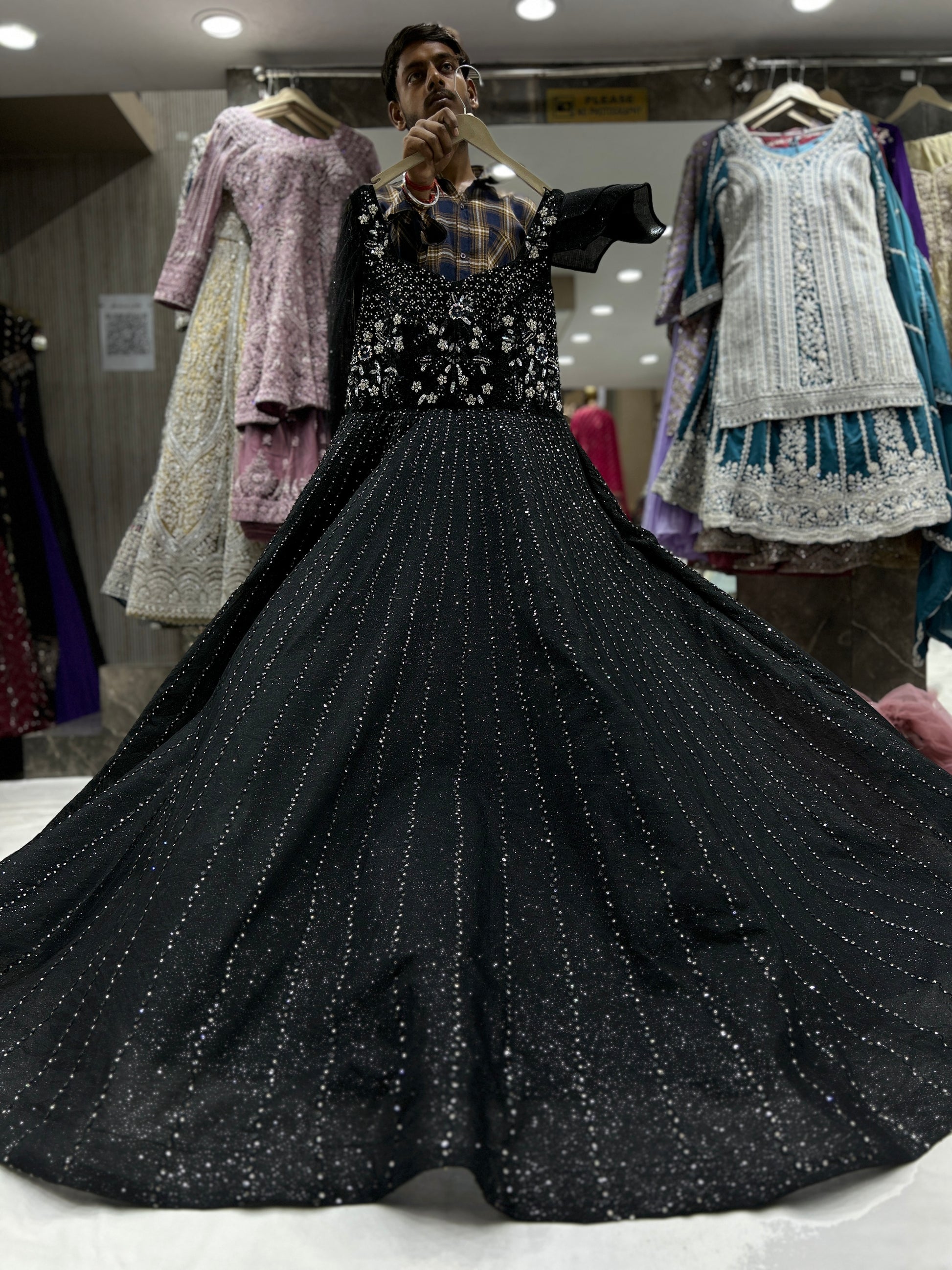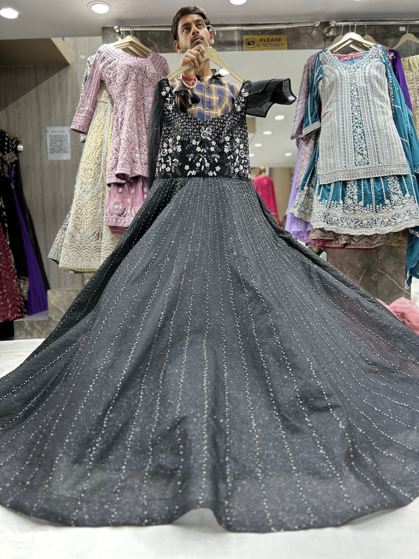 Discover elegance with our Designer Gown Collection, perfect for every special occasion. These free-size gowns are Designed to enhance your wardrobe, gown features intricate embroidery, luxurious fabrics, and a flattering silhouette, making it an ideal choice for weddings, cocktail parties, receptions, and festive celebrations.