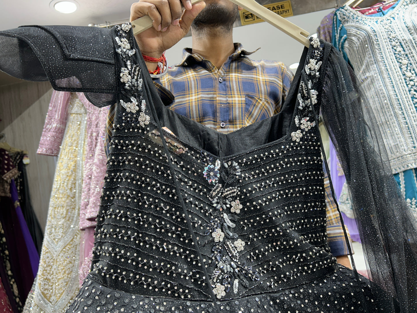 - ₹10,000 – ₹15,000: Glamorous gowns with detailed embroidery and embellishments