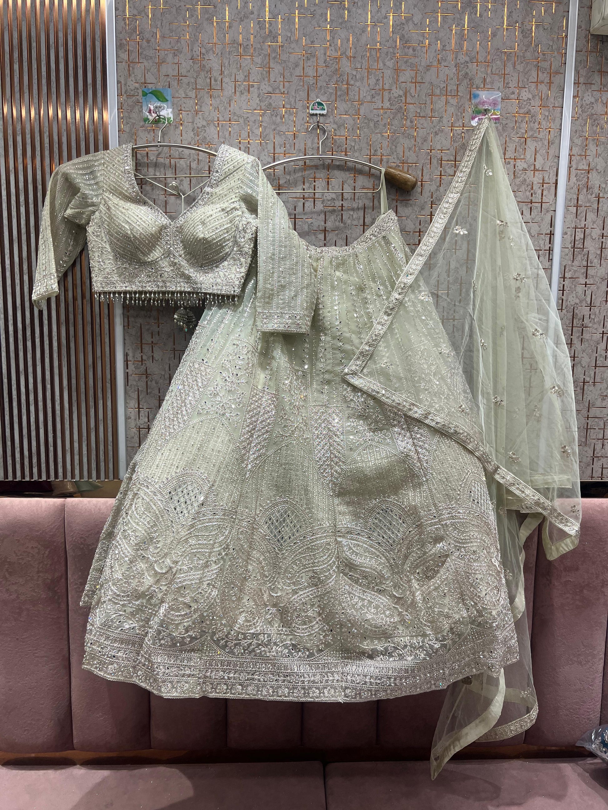 Attractive pista green peacock crop top Lehenga Happy Customer