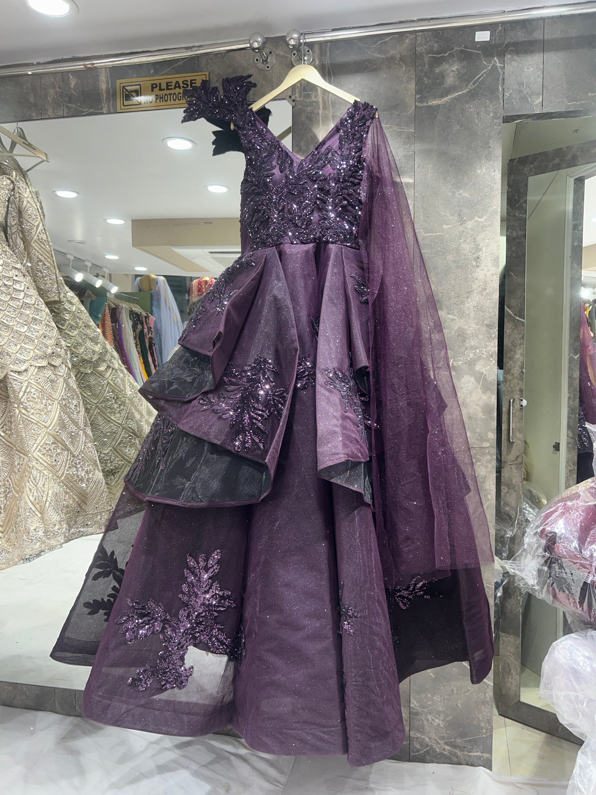 Eye catching purple long dress gown