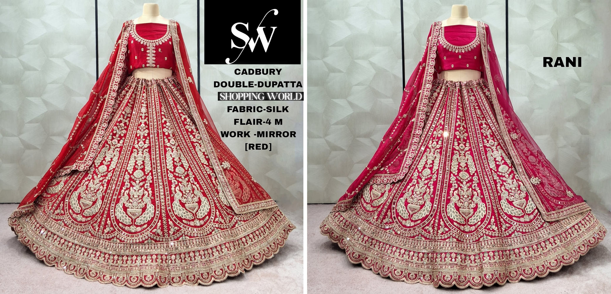 Eye Catching Rani pink Red Silk Double Duptta peacock Bridal Lehenga