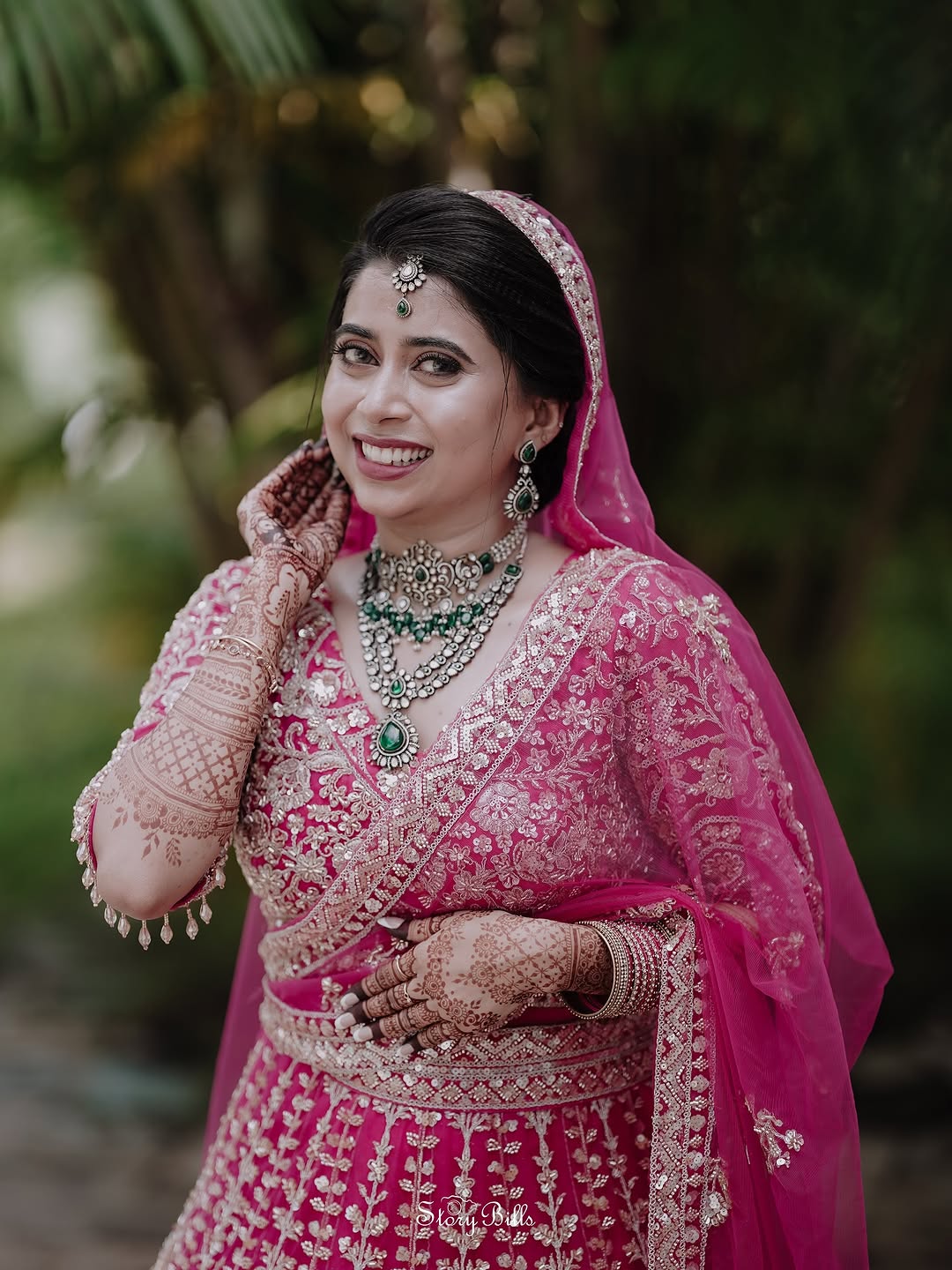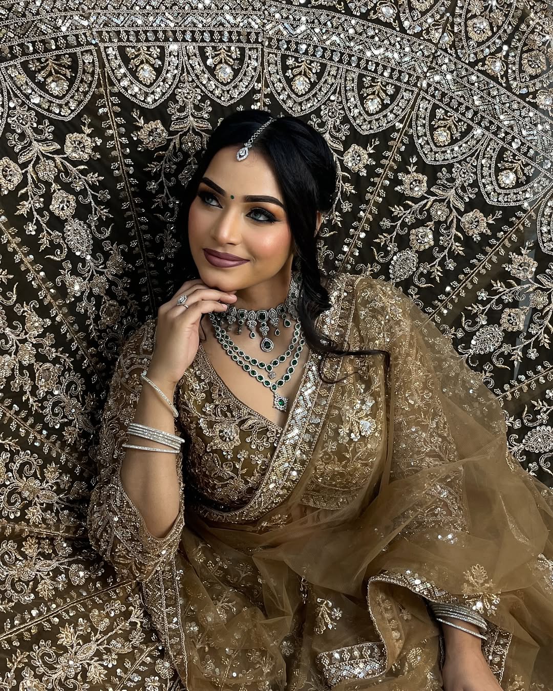 A-line lehengas, Anarkali suits, and flared gowns are flattering on most body types and help enhance your bridal look