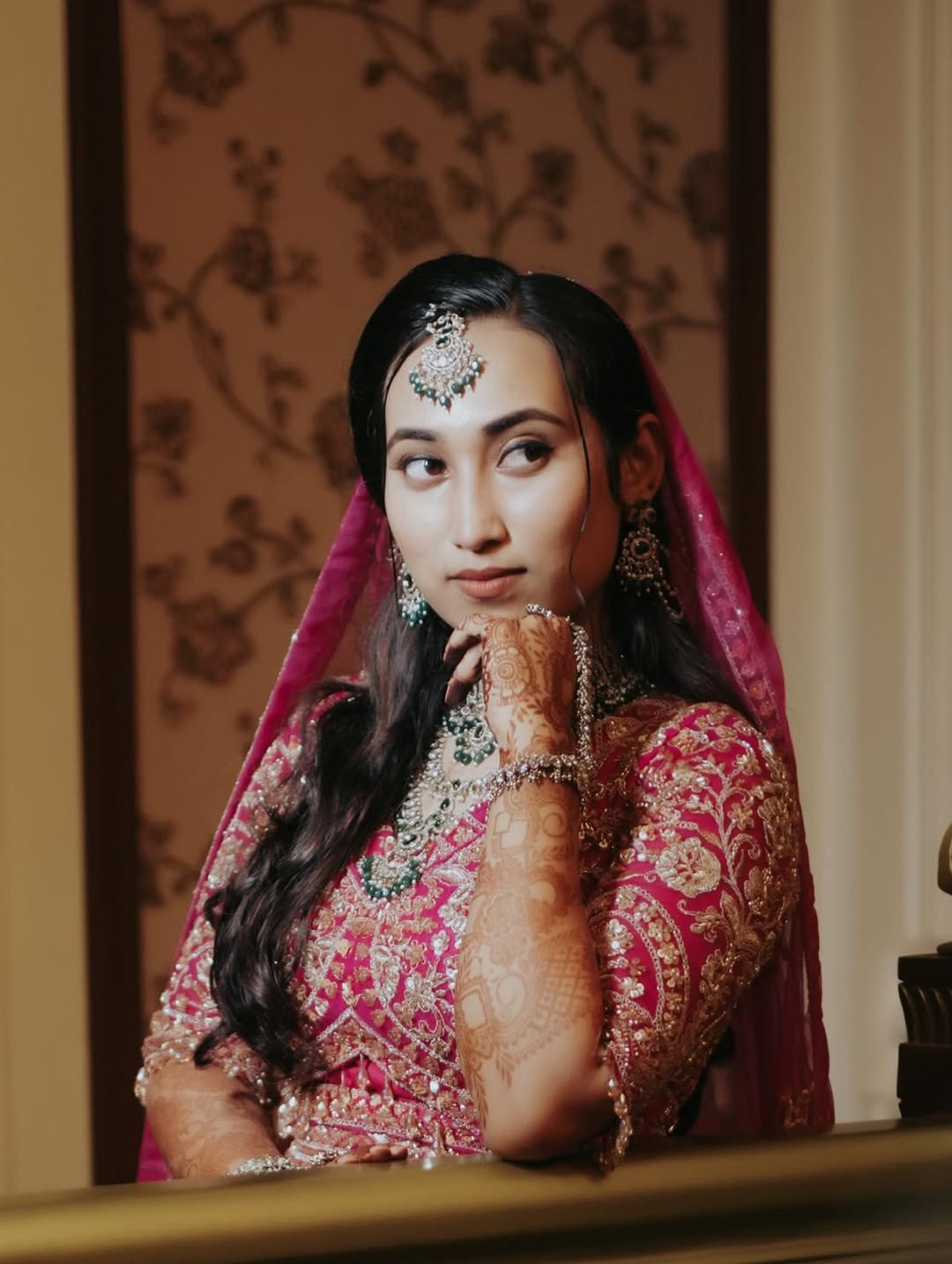 Glamorous Rani pink peacock Double dupatta Silk Bridal Lehenga happy customer