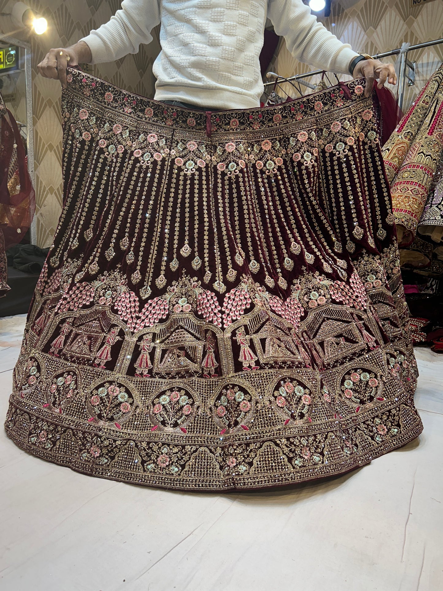 Designer jhumka Maroon bridal lehenga ( happy customer)