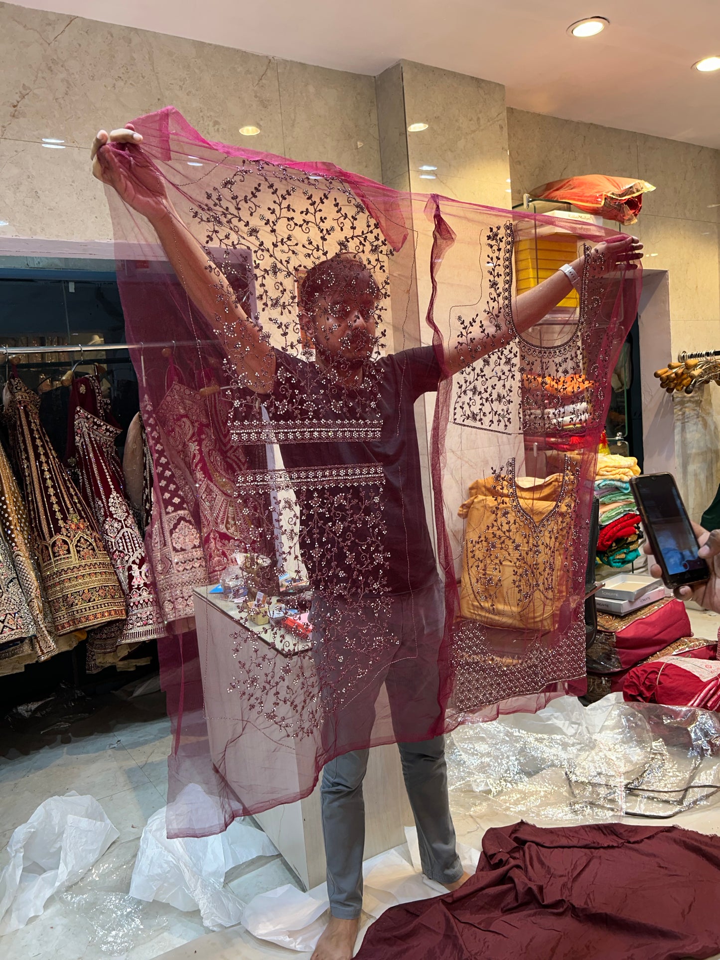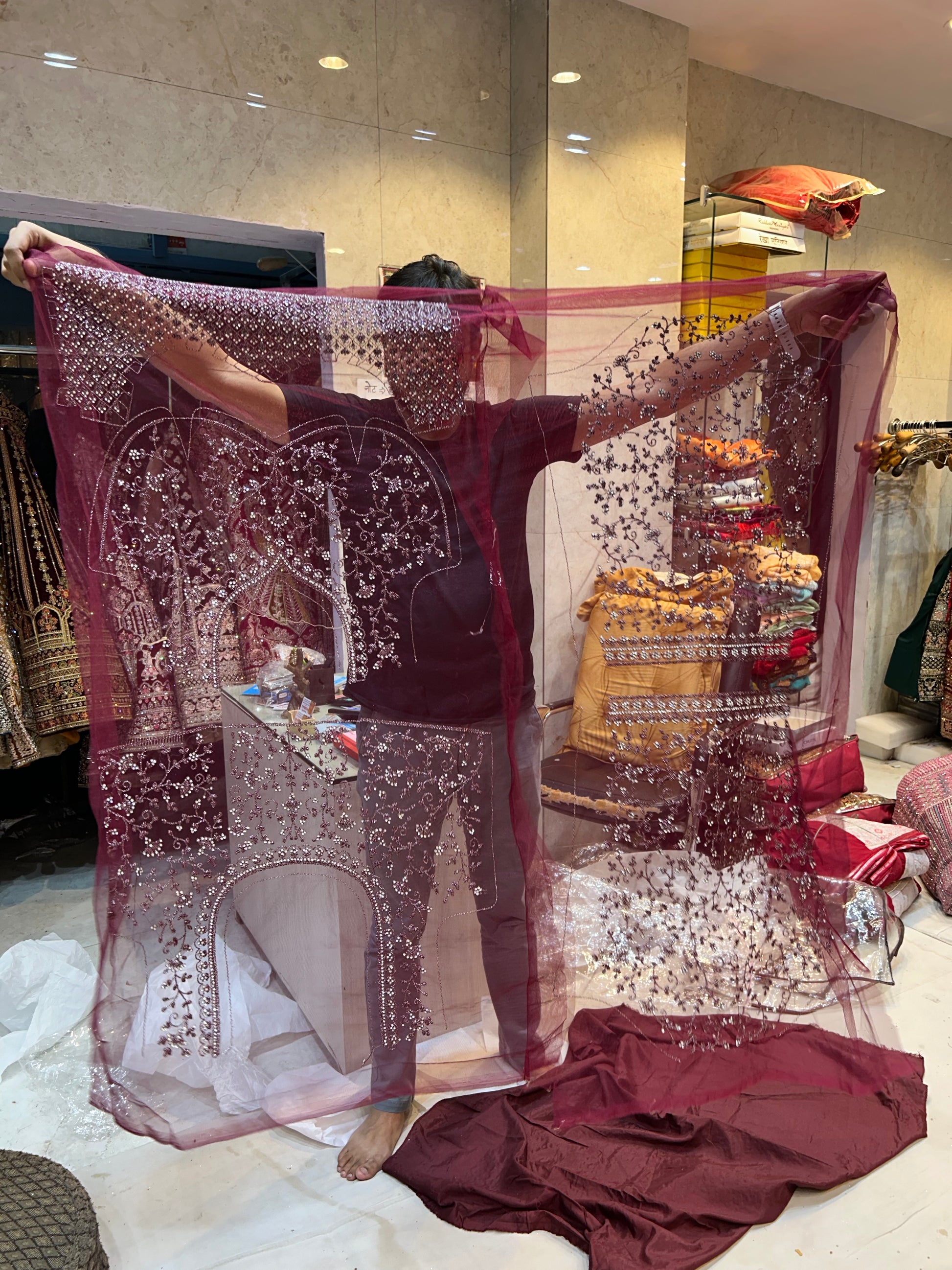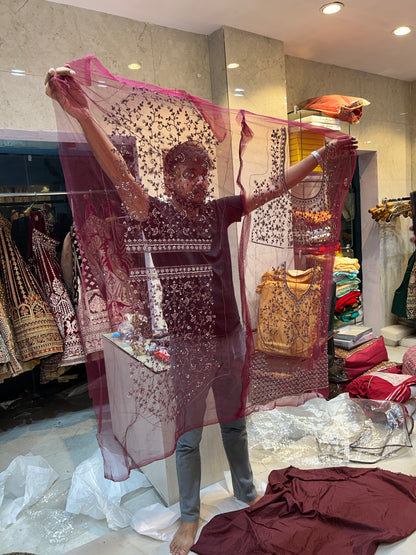 Designer jhumka Maroon bridal lehenga ( happy customer)