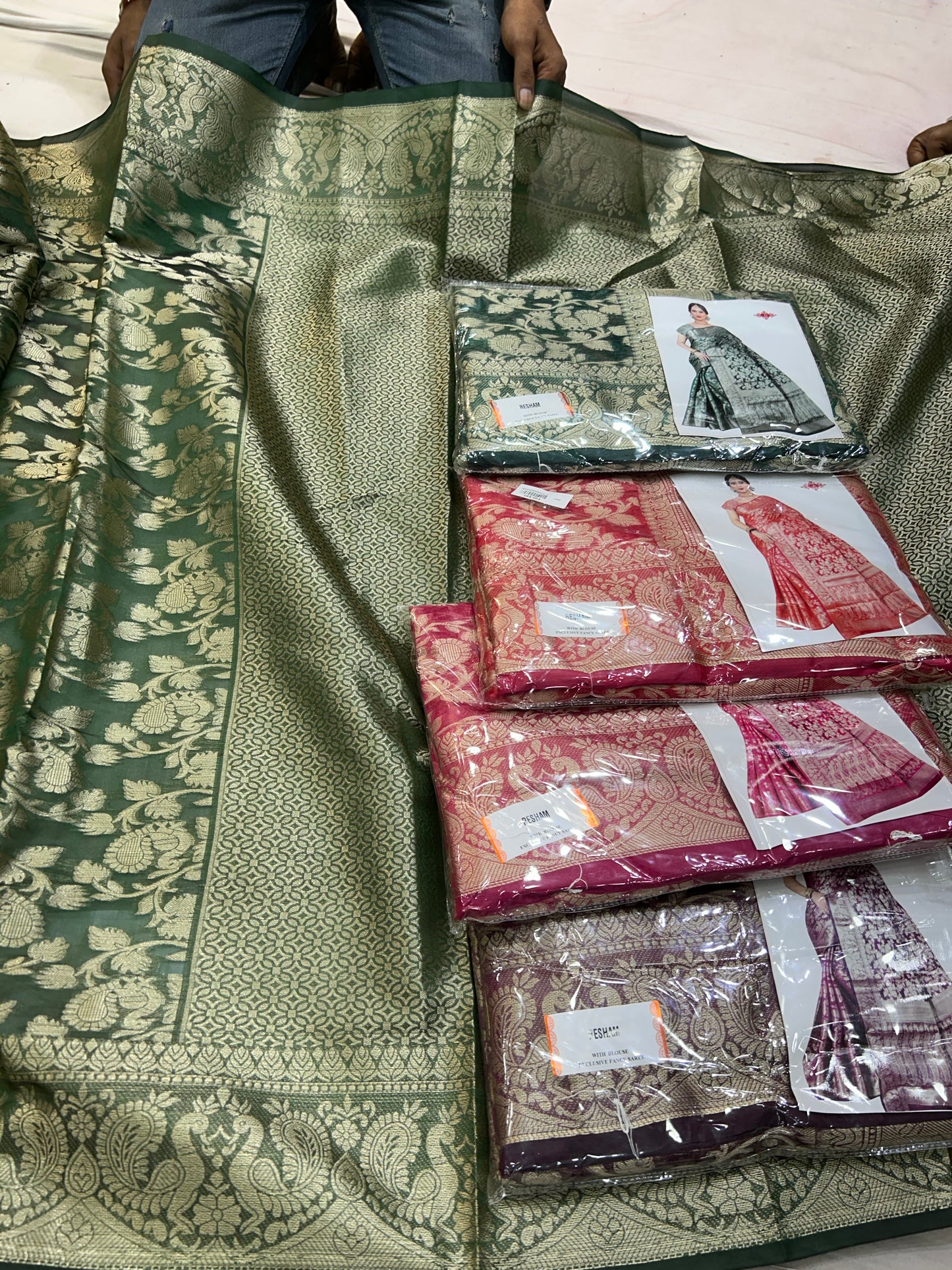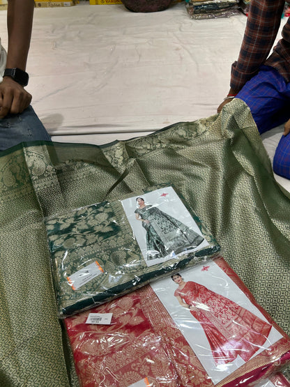 Make your wedding day special with our Indian wedding sarees, featuring: ✔ Banarasi silk sarees – Luxurious weaves with intricate zari work