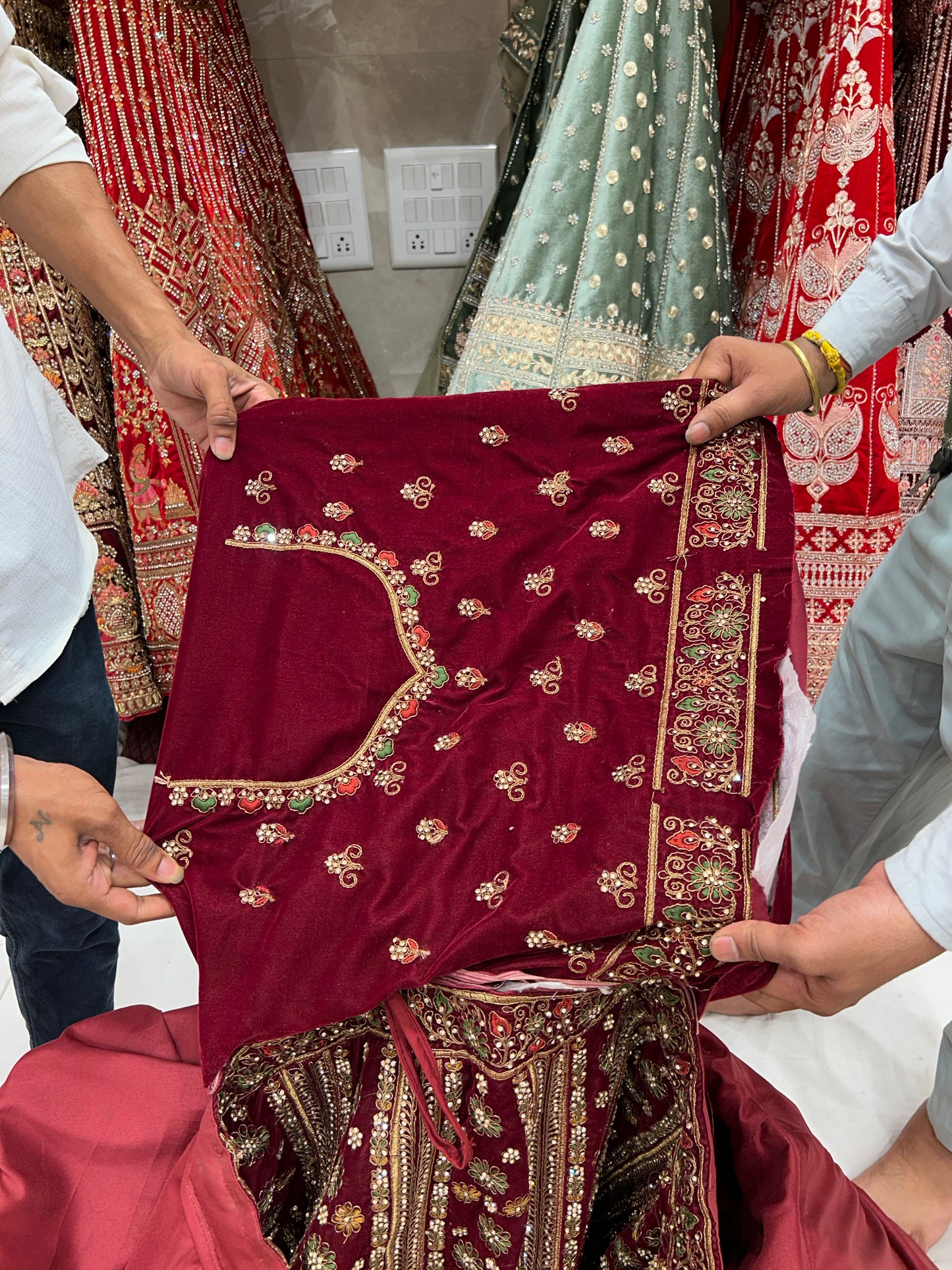Designer jhumka Maroon bridal lehenga ( happy customer)