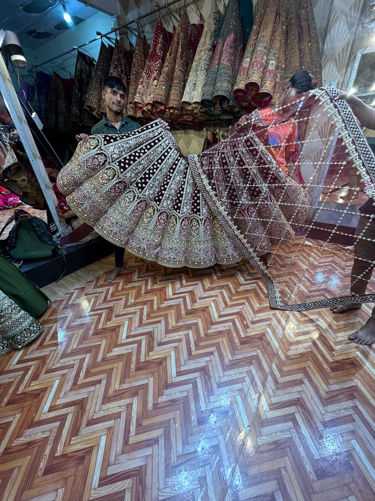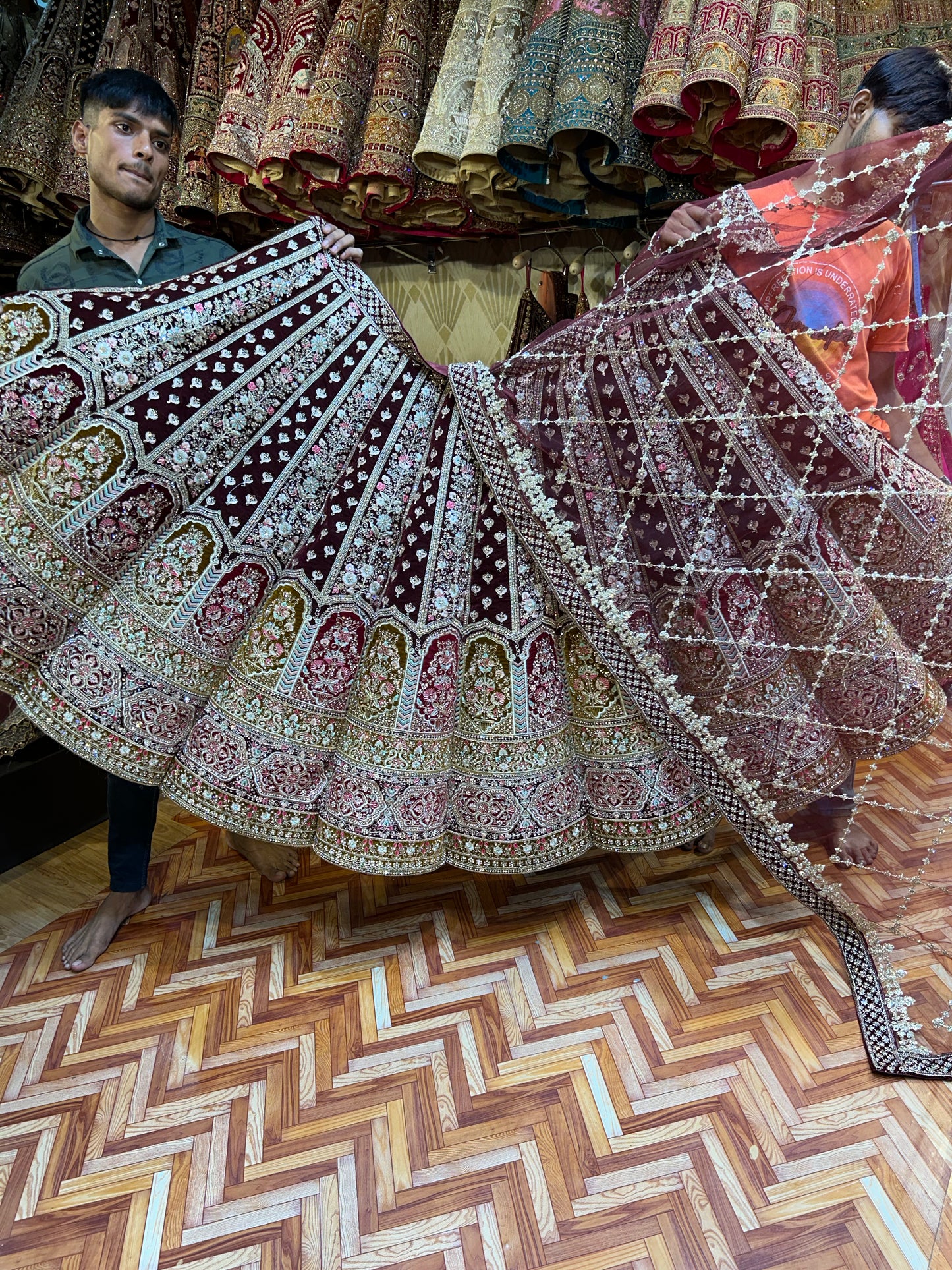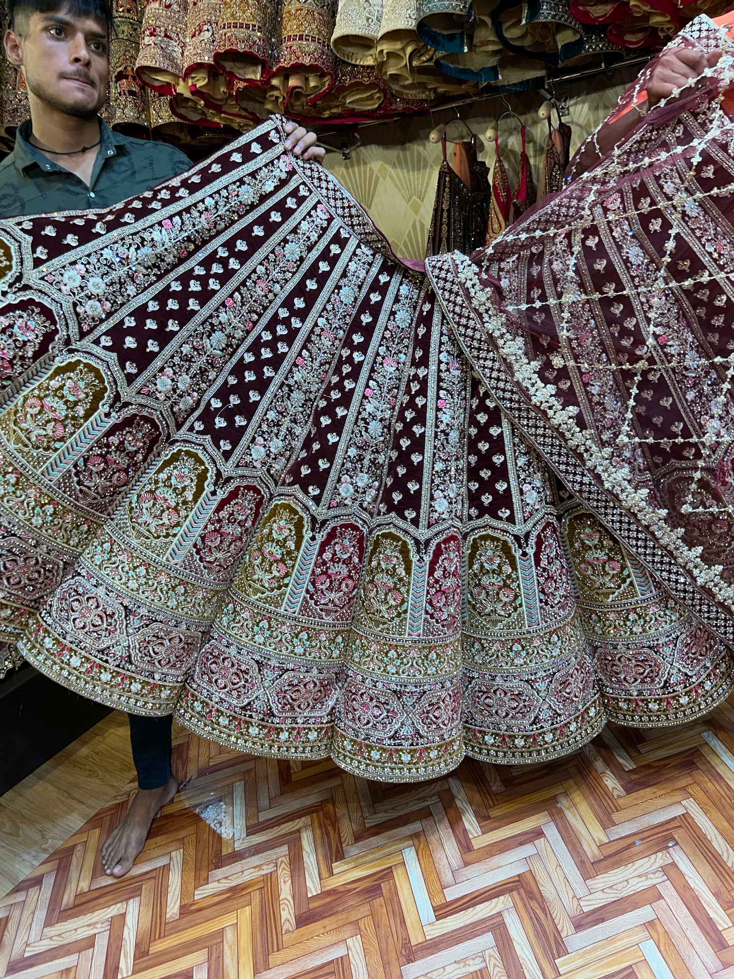 Designer jhumka Maroon bridal lehenga ( happy customer)