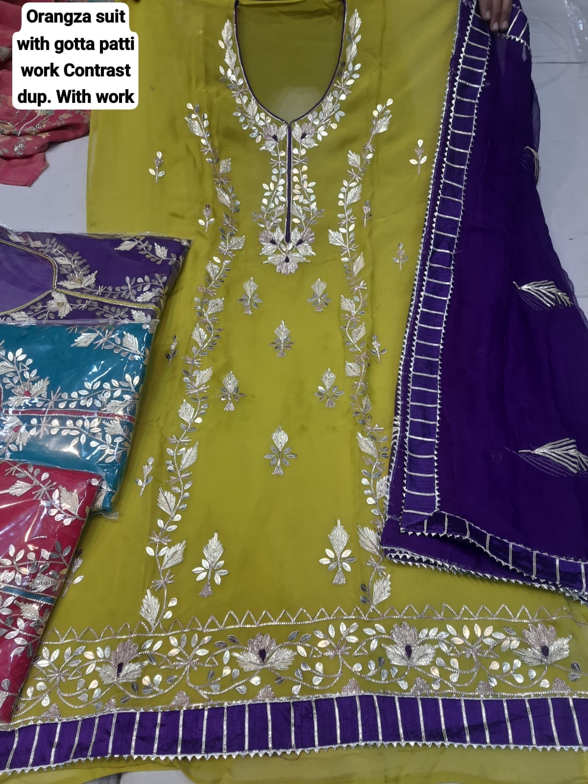 Fabulous yellow unstitched salwar suit dress material(free size)