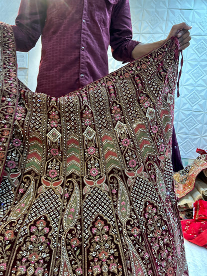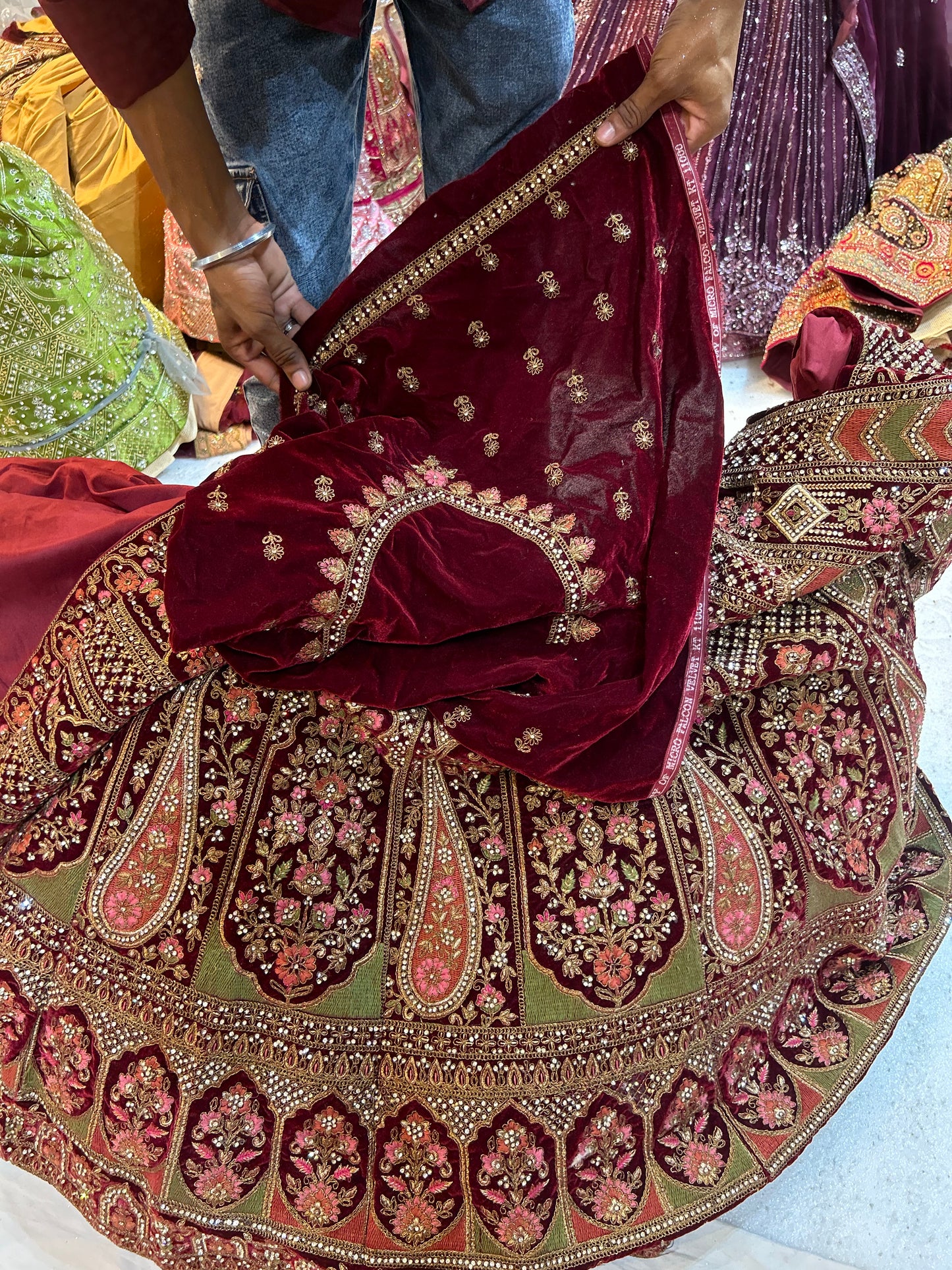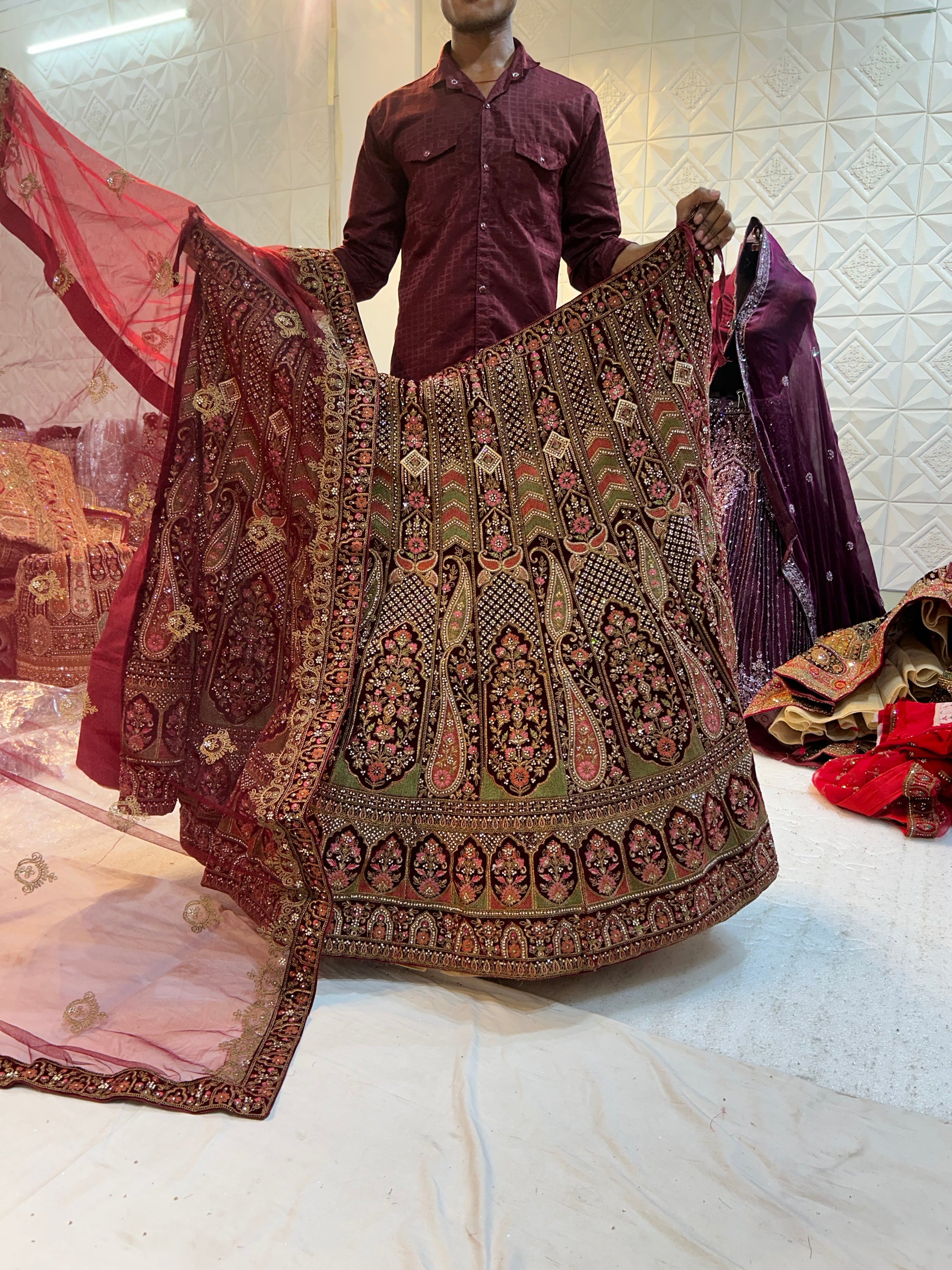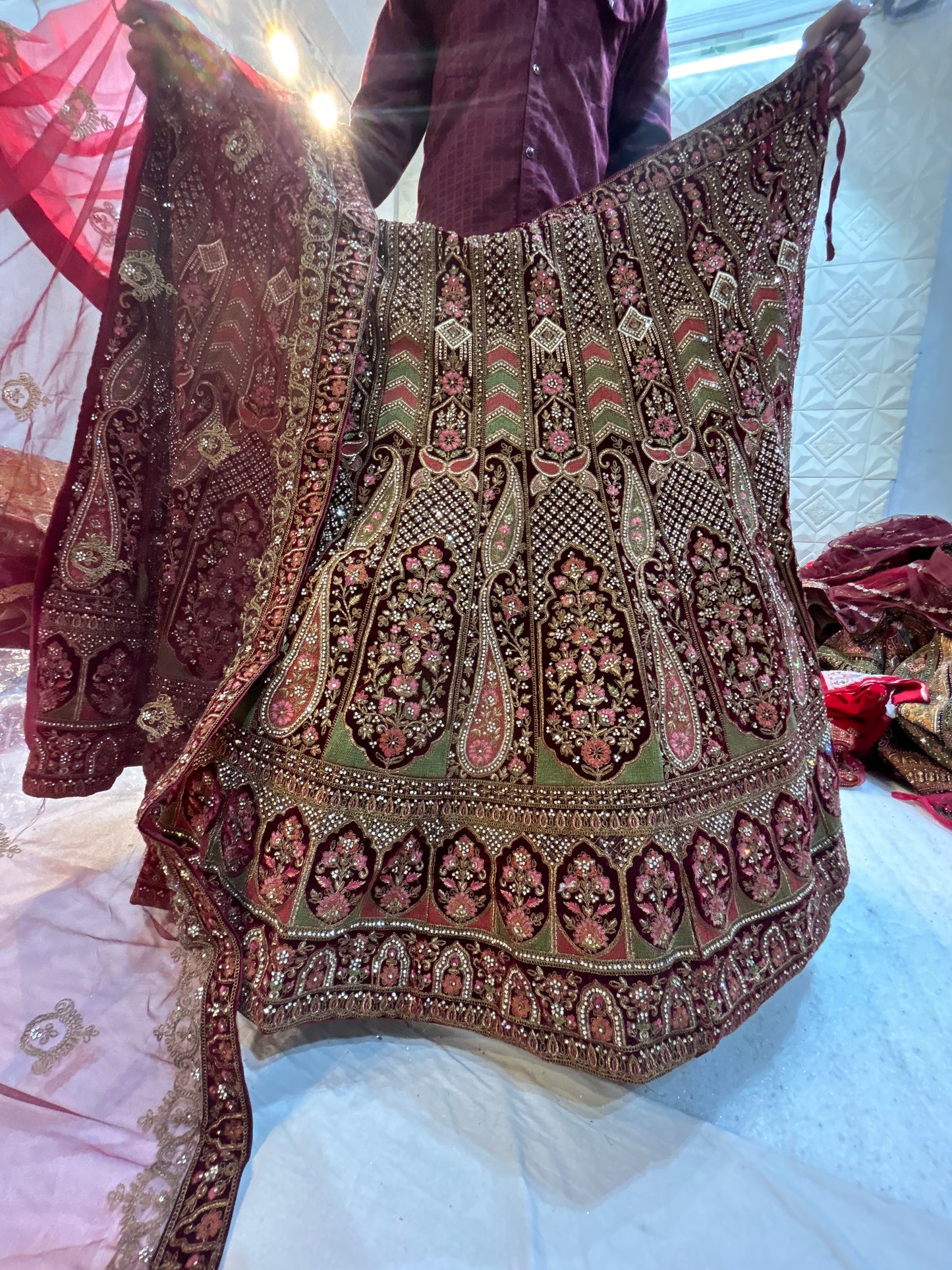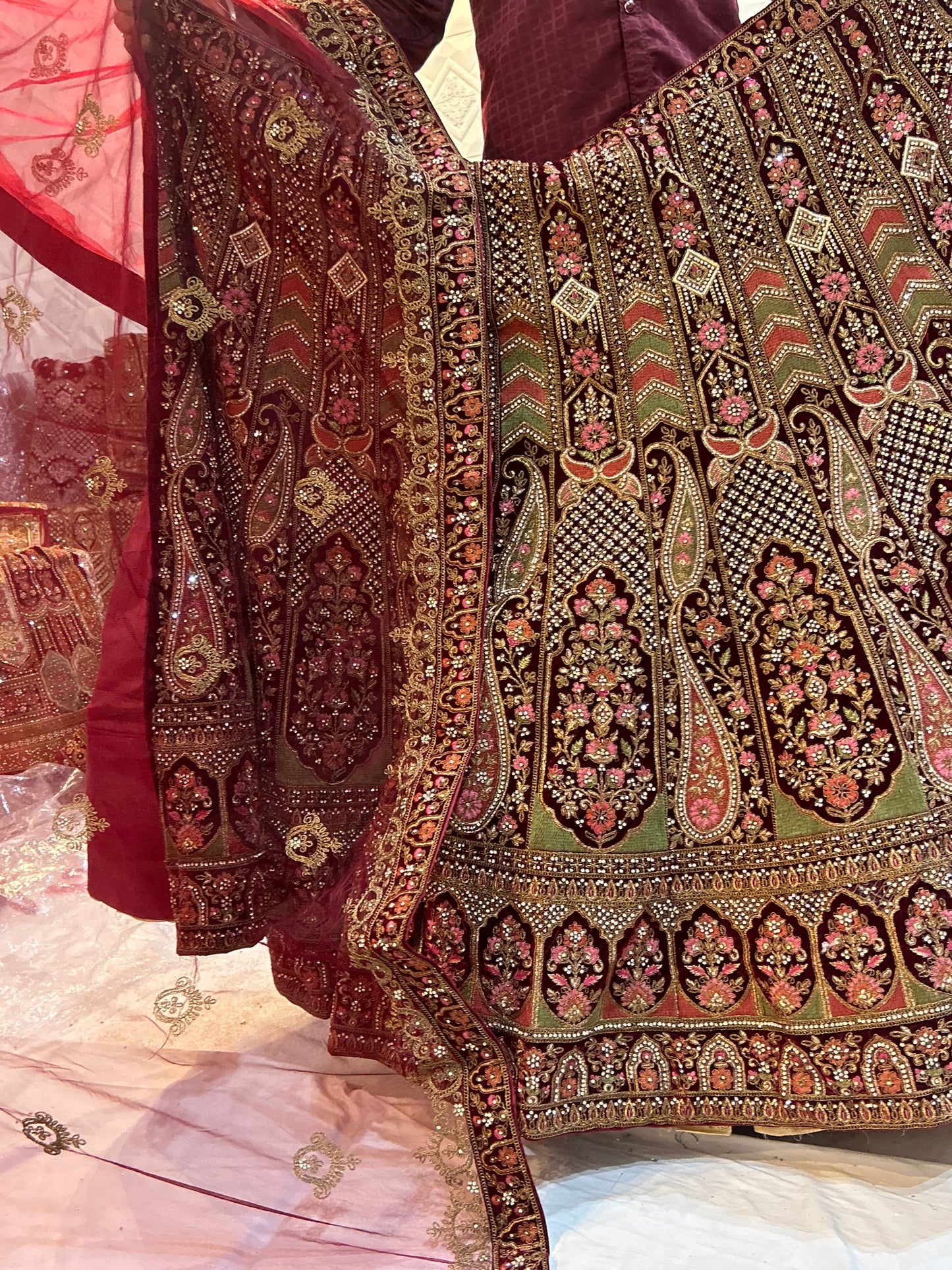 Designer jhumka Maroon bridal lehenga ( happy customer)