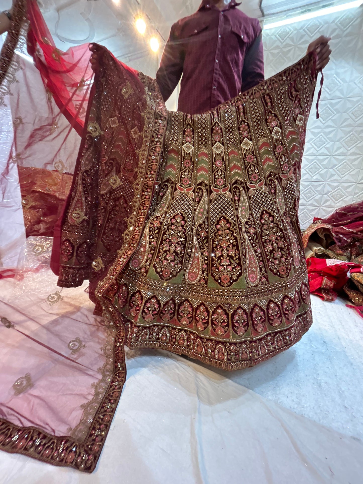 Royal Red Bridal Lehenga Double tail Dupatta with Dupatta happy customer