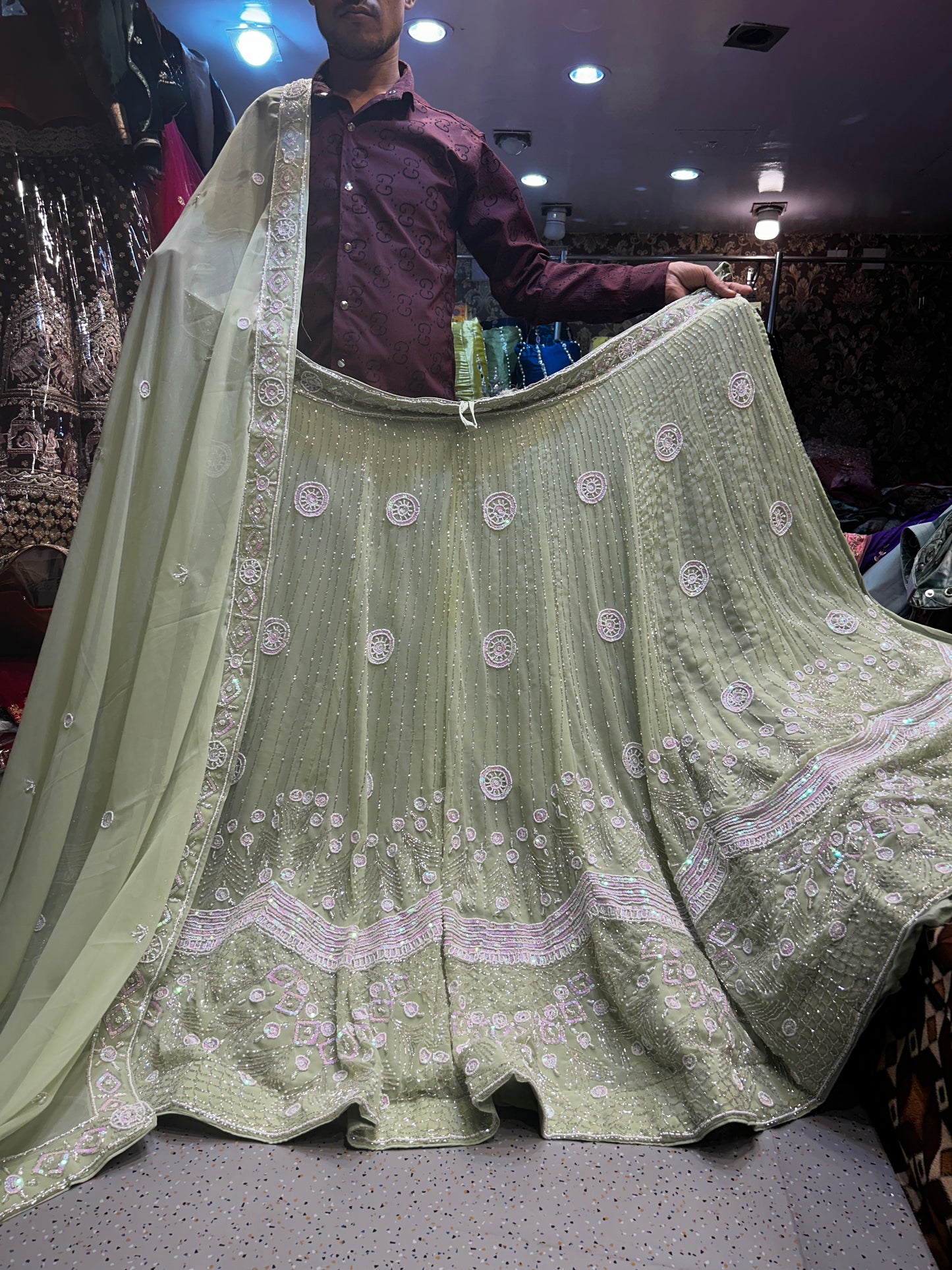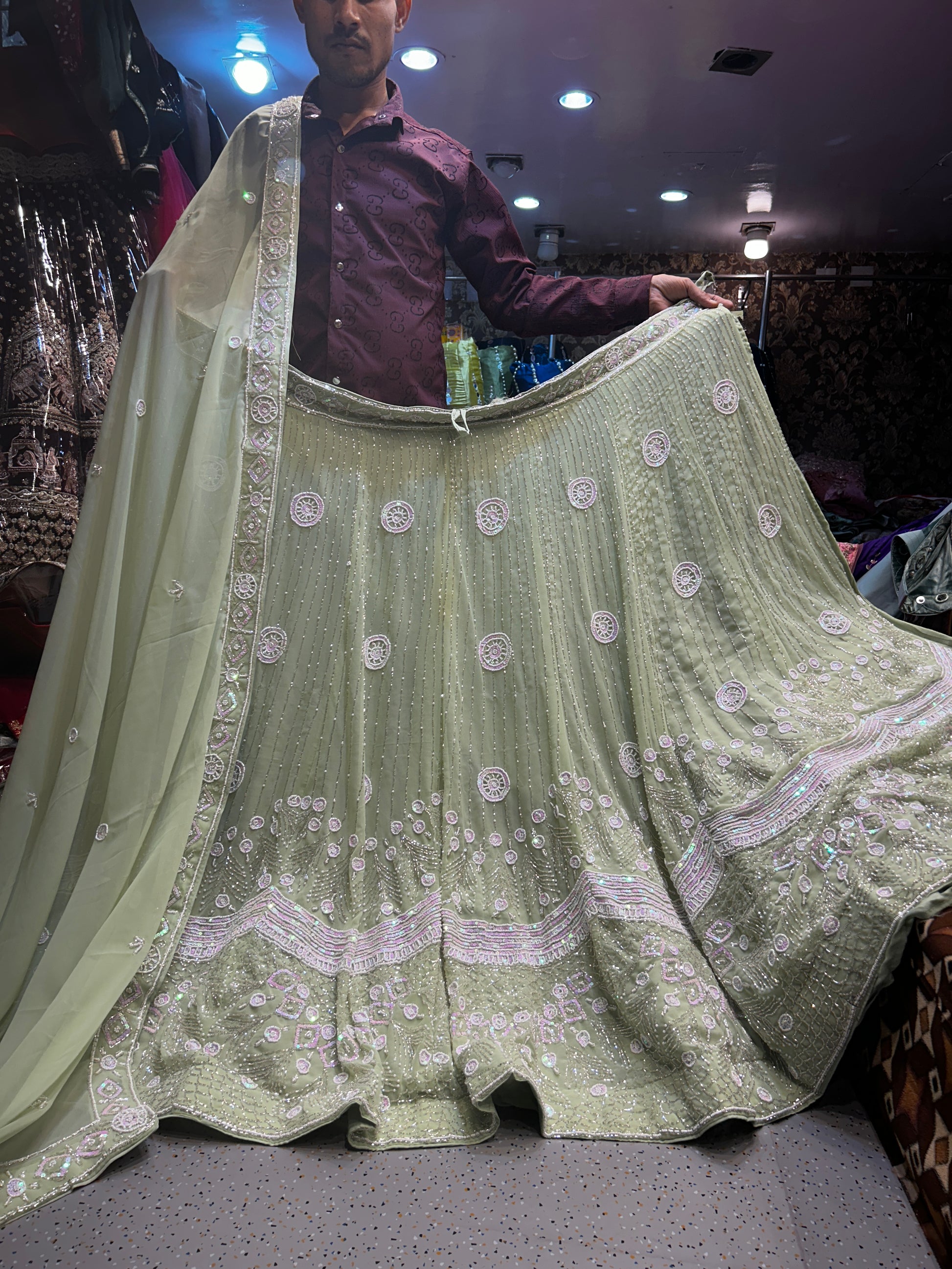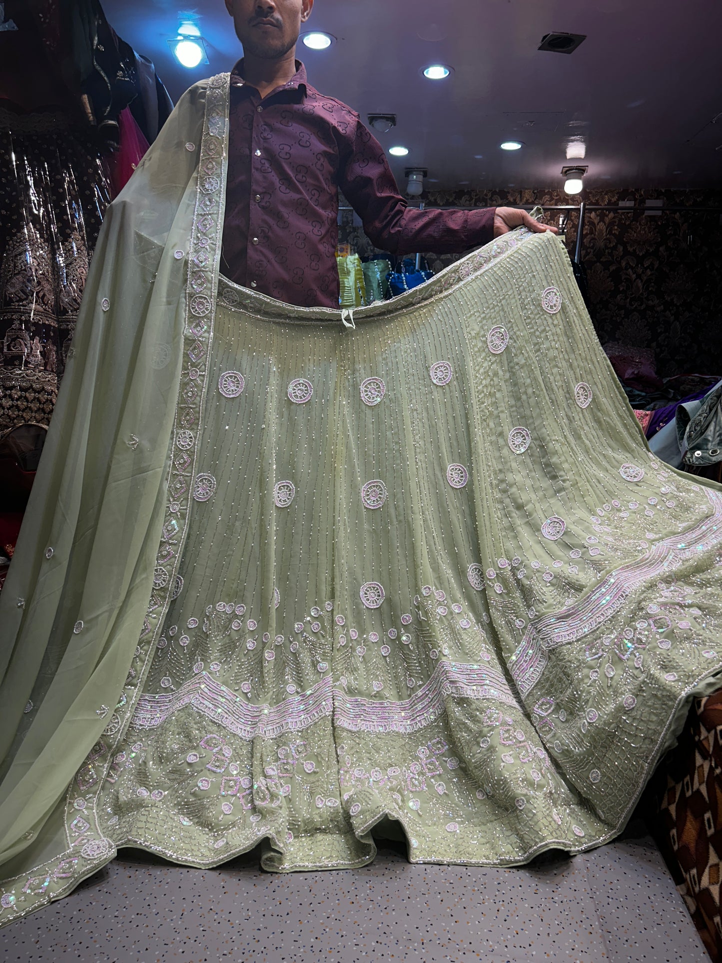 Attractive pista green peacock crop top Lehenga Happy Customer