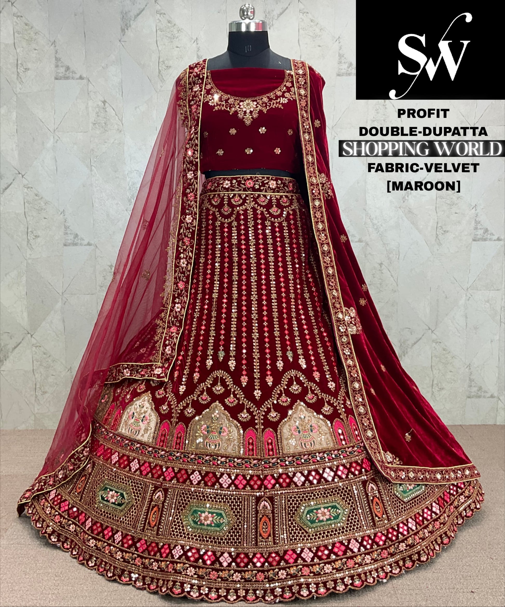 Fantastic maroon bridal Lehenga Velvet