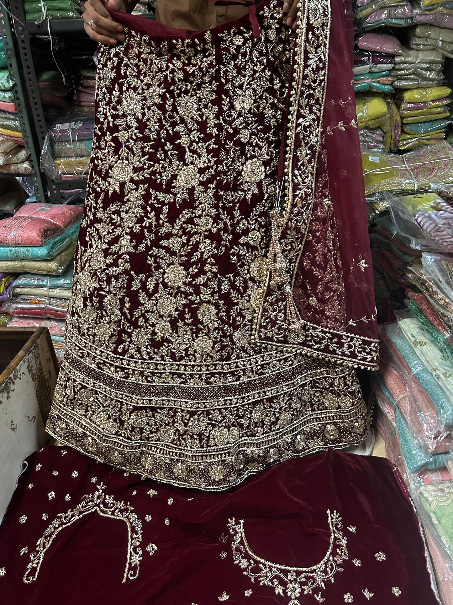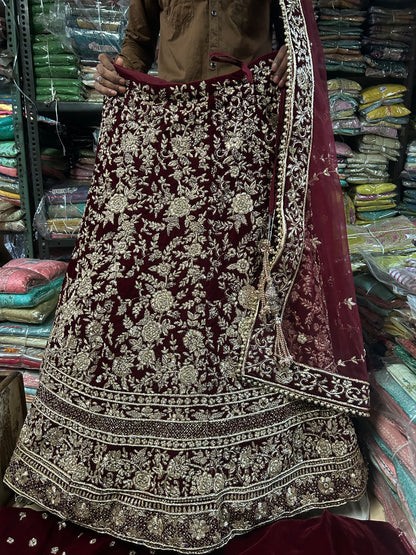 Fantastic maroon handwork dabka zardozi Lehenga