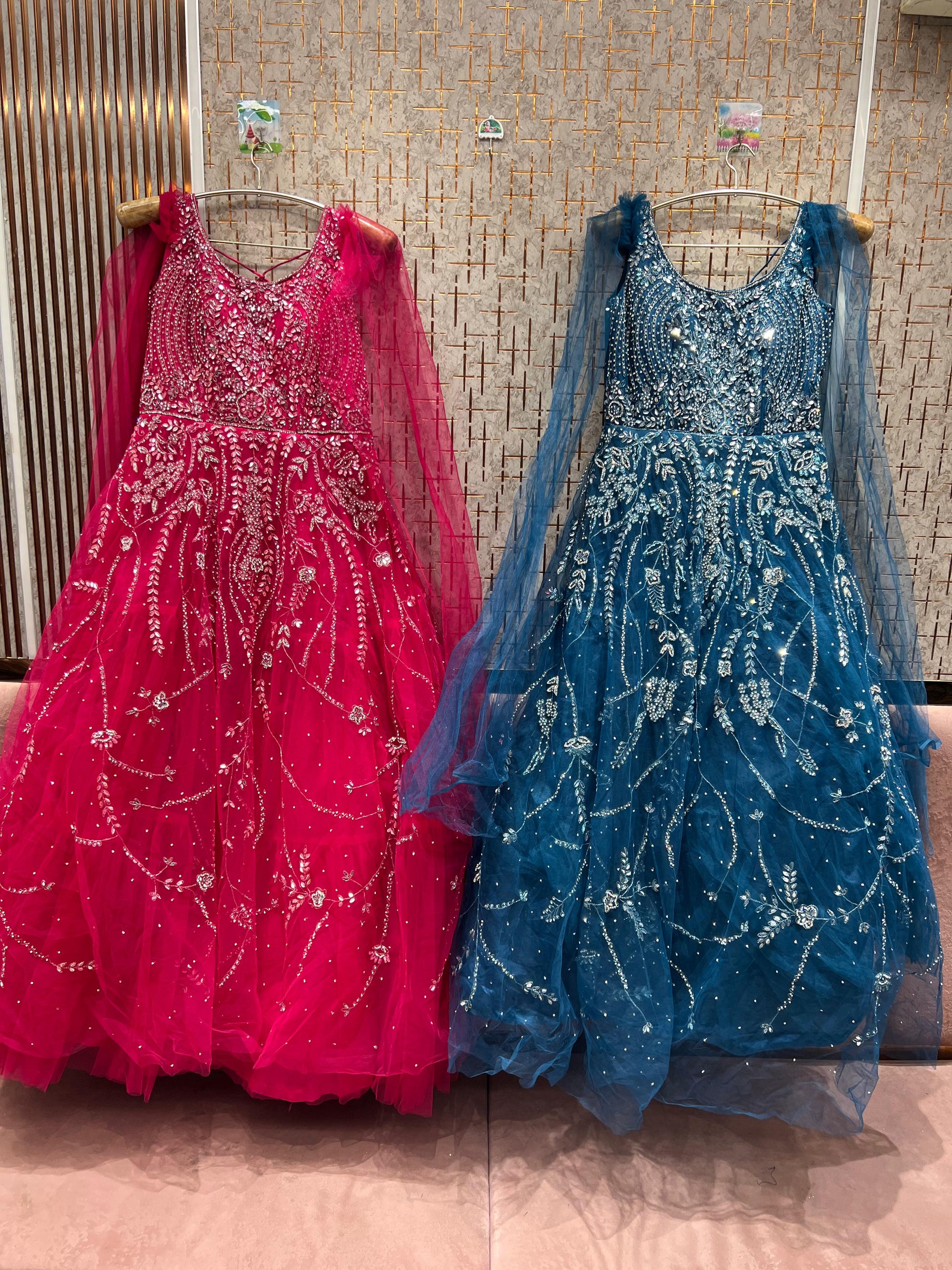 Discover elegance with our Designer Gown Collection, perfect for every special occasion. These free-size gowns are Designed to enhance your wardrobe, gown features intricate embroidery, luxurious fabrics, and a flattering silhouette, making it an ideal choice for weddings, cocktail parties, receptions, and festive celebrations.