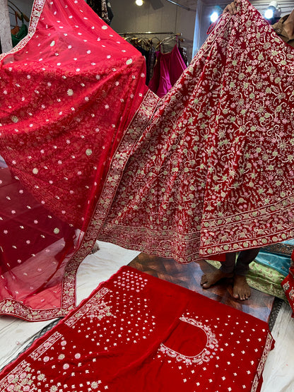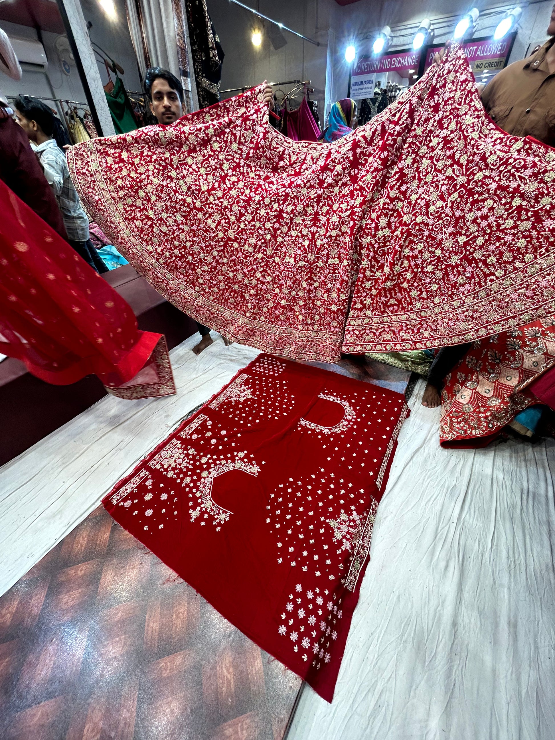 Royal Red Bridal Lehenga Double tail Dupatta with Dupatta happy customer