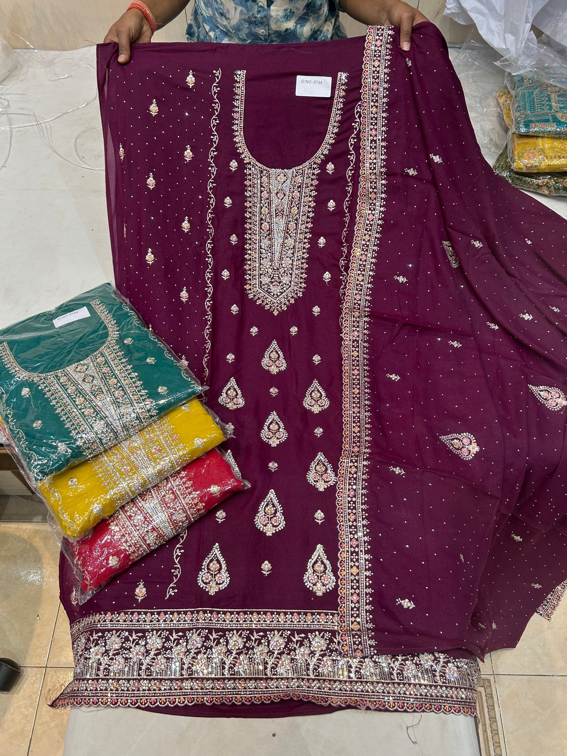 We have an extensive collection of Anarkali suits, palazzo suits, straight-cut suits, Punjabi salwar suits, and party-wear salwar suits in various fabrics and designs.