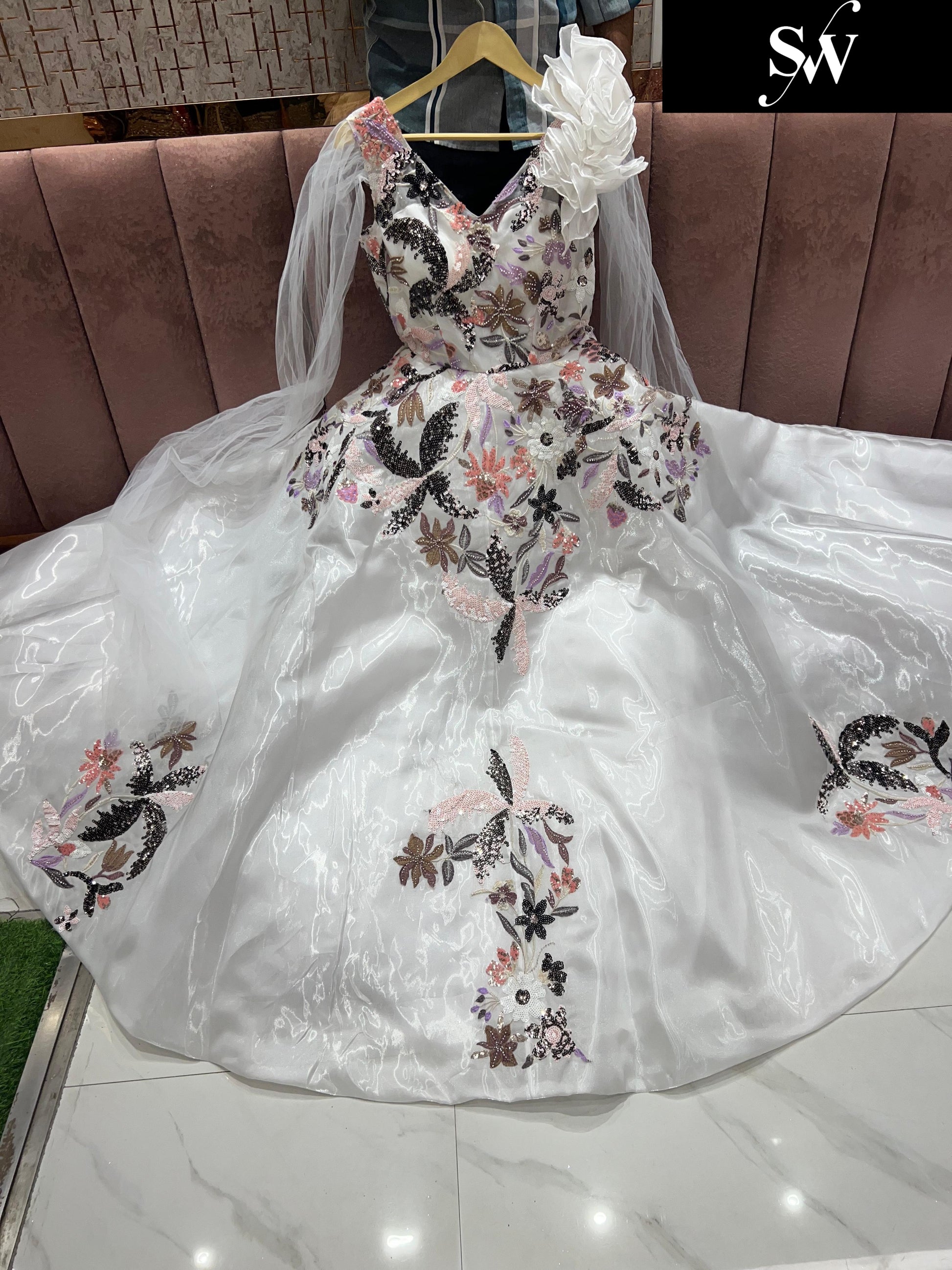 Discover elegance with our Designer Gown Collection, perfect for every special occasion. These free-size gowns are Designed to enhance your wardrobe, gown features intricate embroidery, luxurious fabrics, and a flattering silhouette, making it an ideal choice for weddings, cocktail parties, receptions, and festive celebrations.