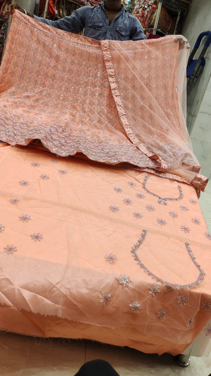 Discover elegance with our Designer Lehenga Collection, perfect for any occasion. These free-size lehengas are thoughtfully designed to accommodate all body types and can be customized to suit your unique style. Crafted to elevate your wardrobe, each lehenga set includes a semi-stitched skirt, unstitched blouse fabric (choli), and a matching chunni (dupatta), making it an ideal choice for weddings, festivals, and special celebrations.