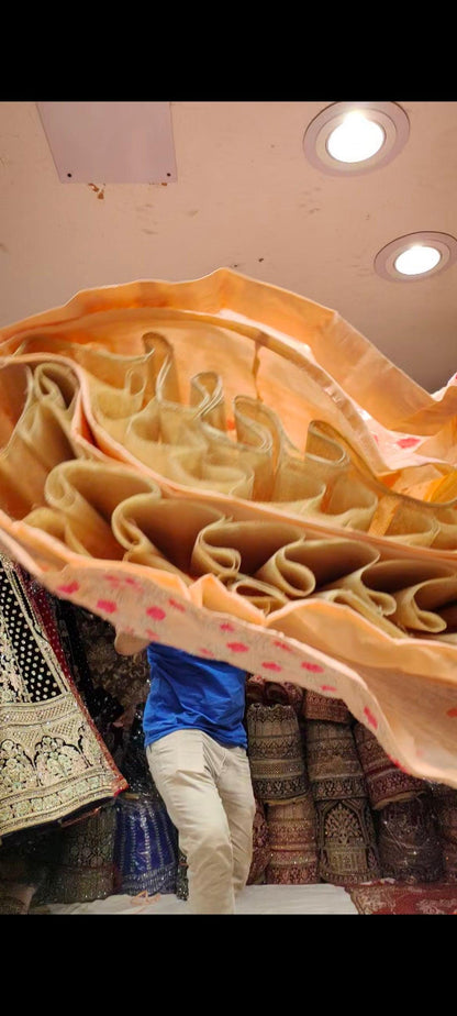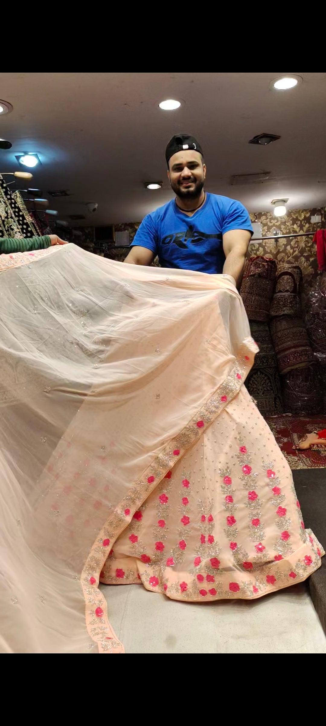 Glamorous Rani pink peacock Double dupatta Silk Bridal Lehenga happy customer