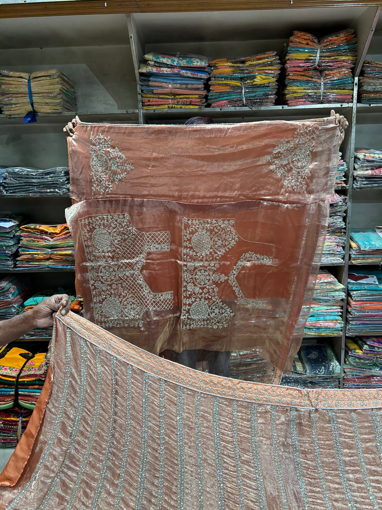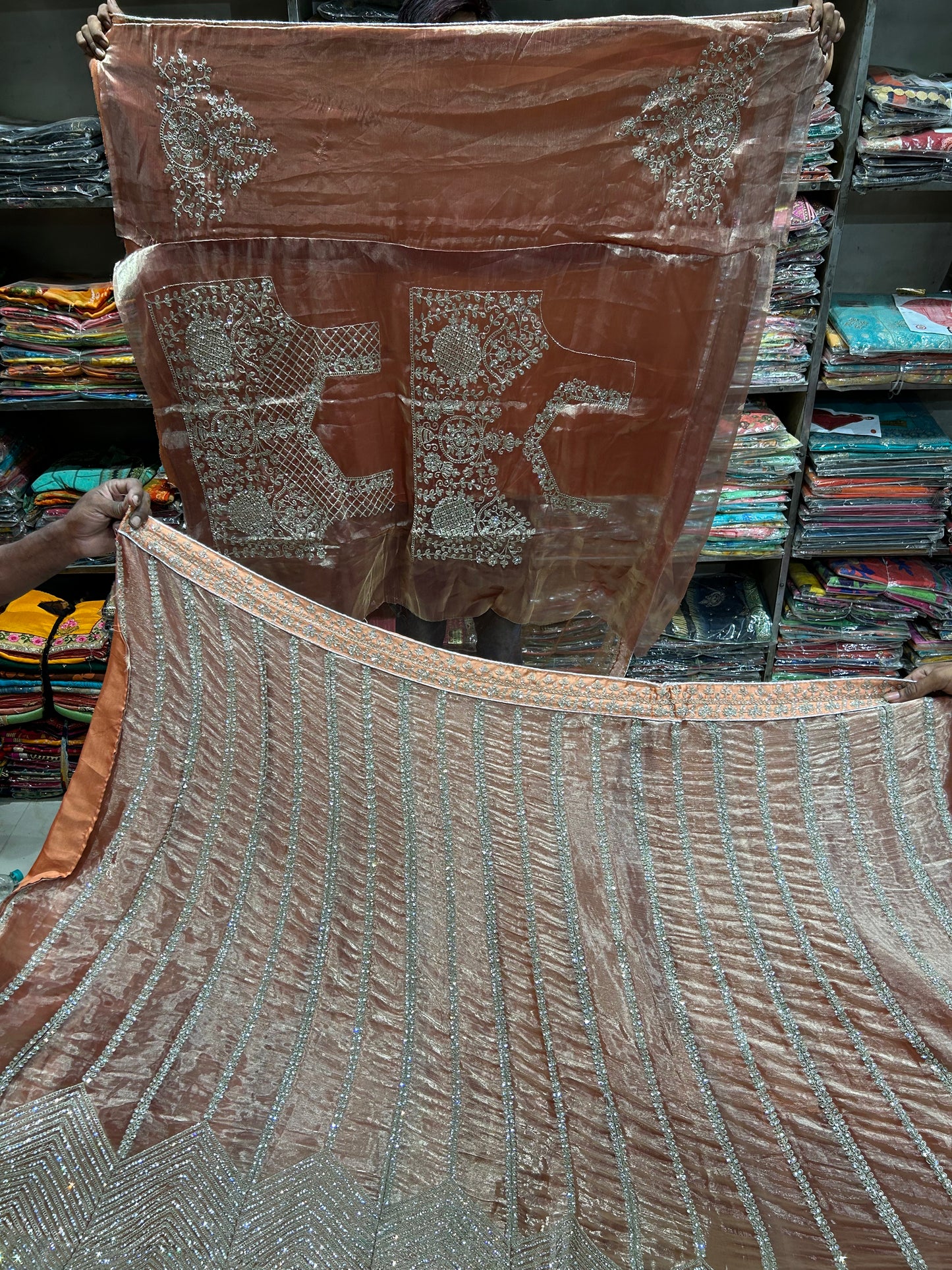 Discover elegance with our Designer Lehenga Collection, perfect for any occasion. These free-size lehengas are thoughtfully designed to accommodate all body types and can be customized to suit your unique style. Crafted to elevate your wardrobe, each lehenga set includes a semi-stitched skirt, unstitched blouse fabric (choli), and a matching chunni (dupatta), making it an ideal choice for weddings, festivals, and special celebrations.