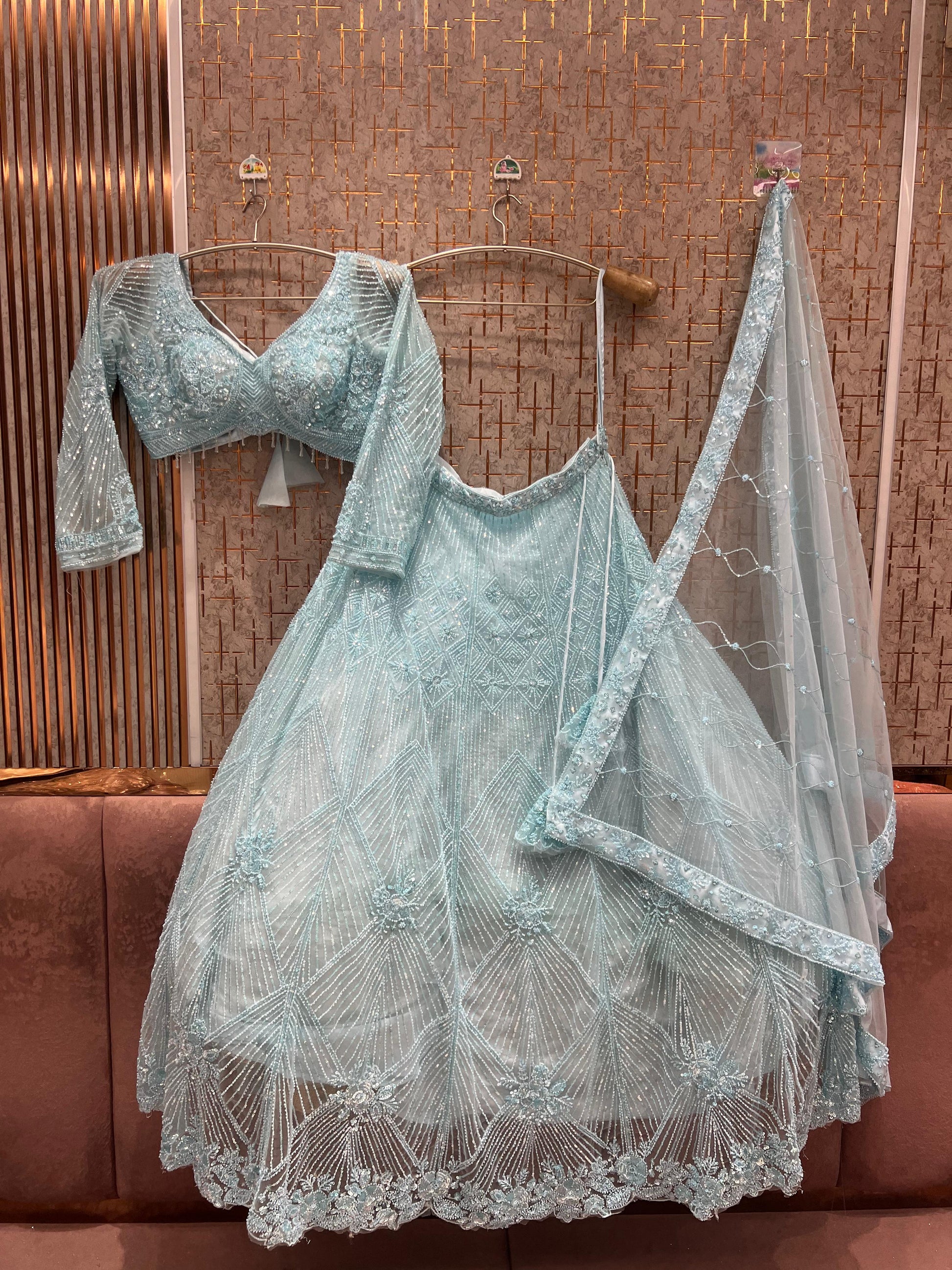 - ₹25,000 – ₹50,000: Premium partywear lehengas with intricate craftsmanship