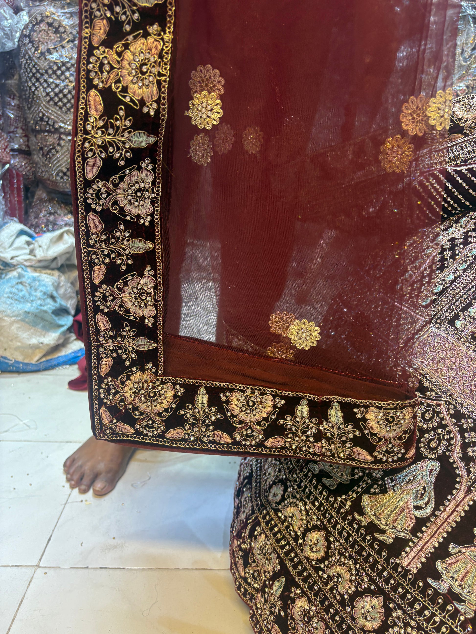 Designer jhumka Maroon bridal lehenga ( happy customer)
