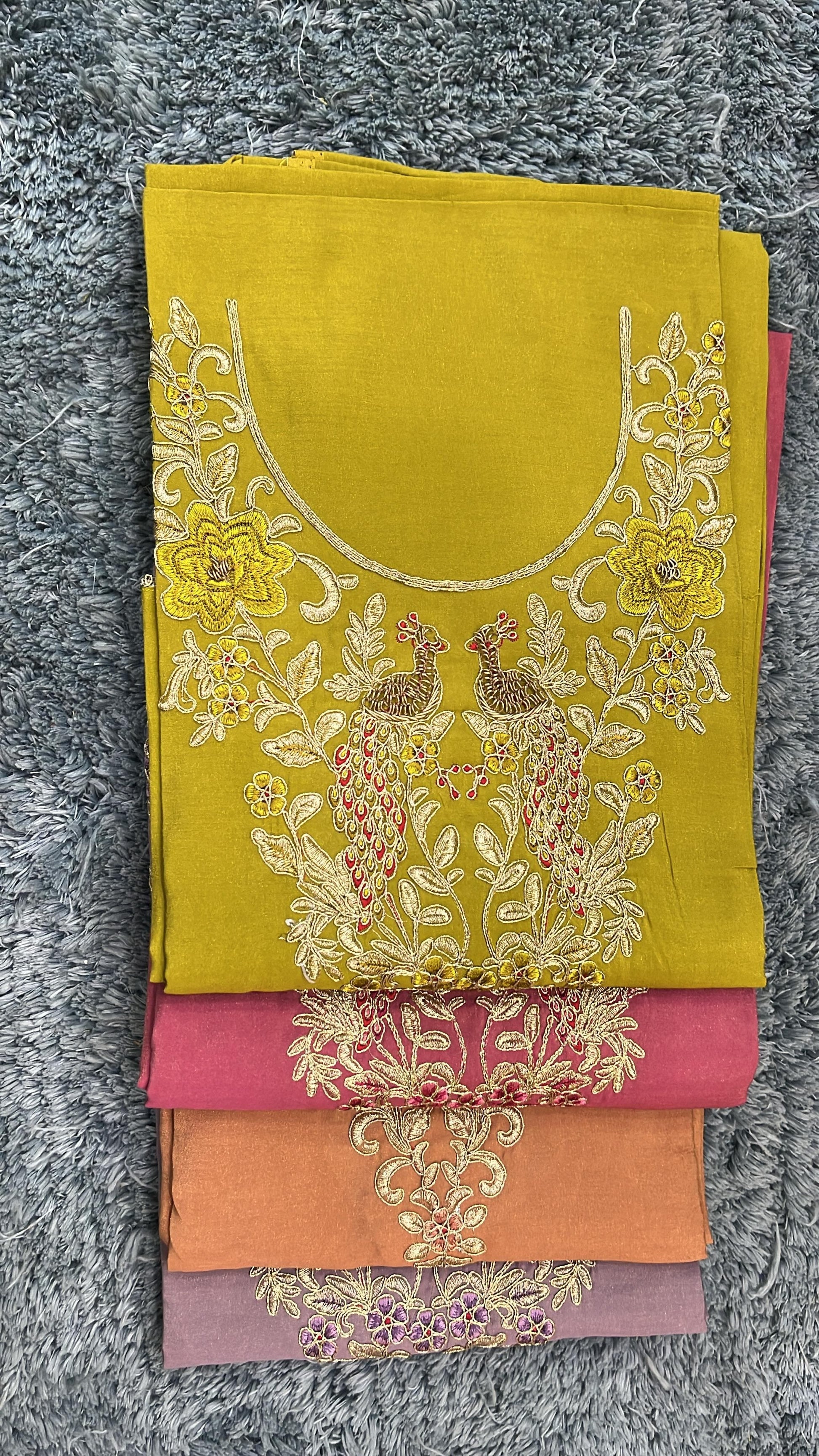 Glamorous yellow unstitched Salwar suits dress material (free size)