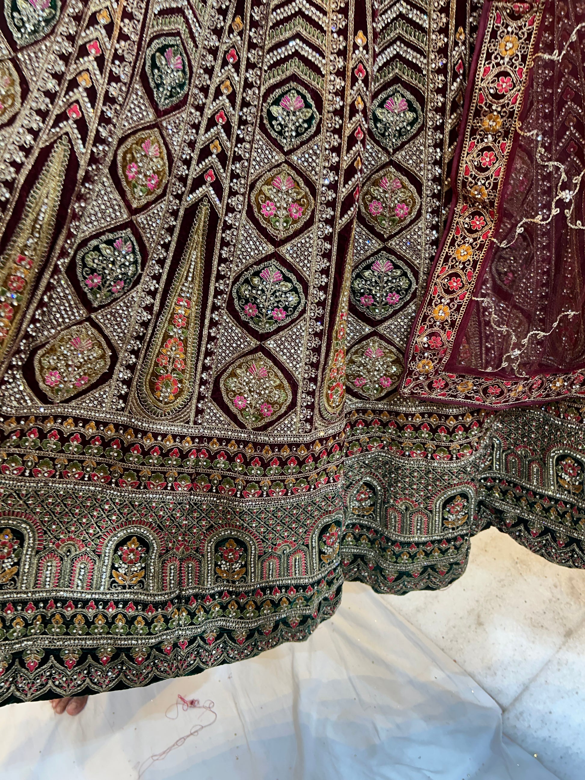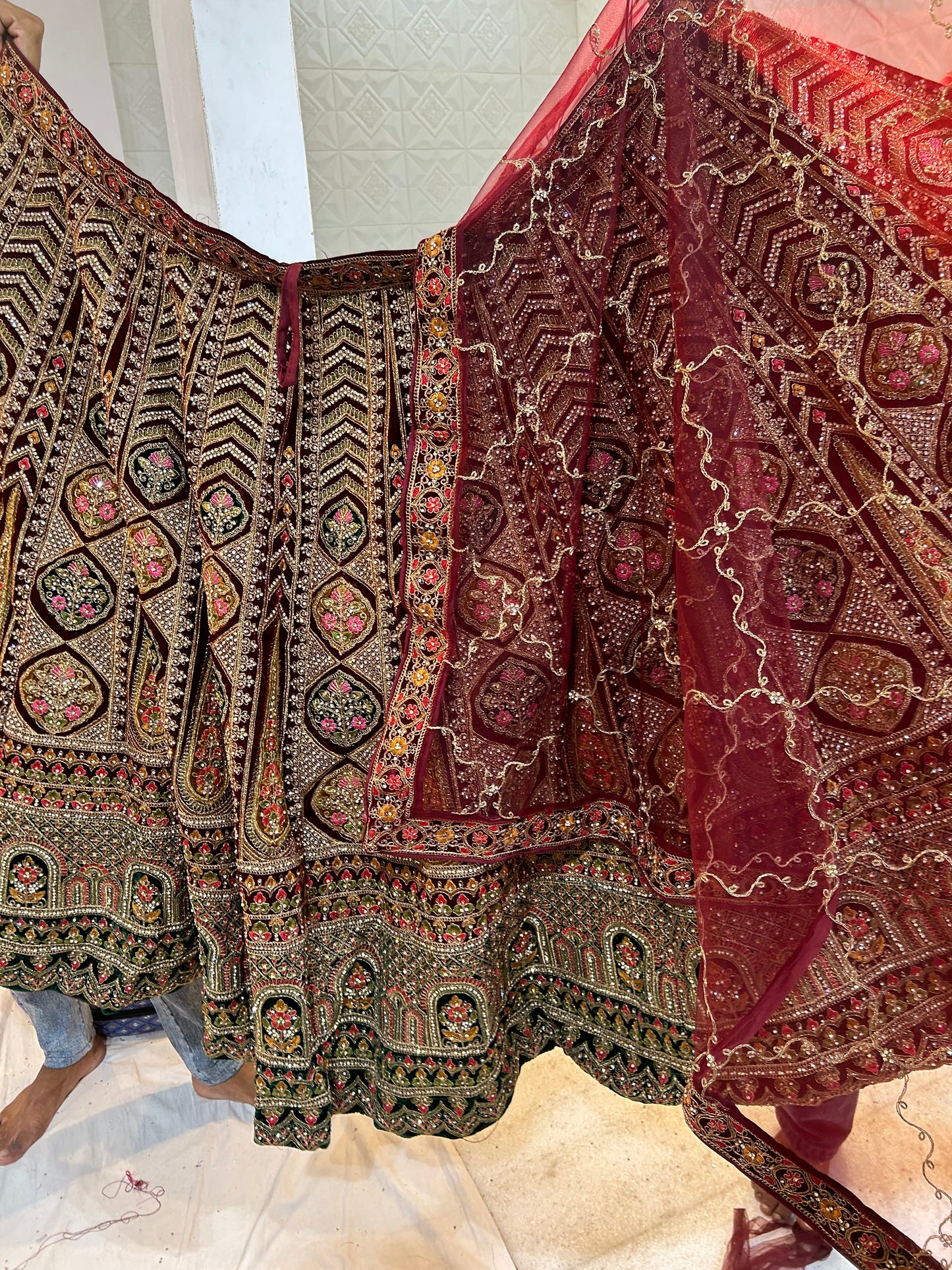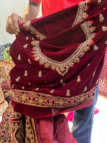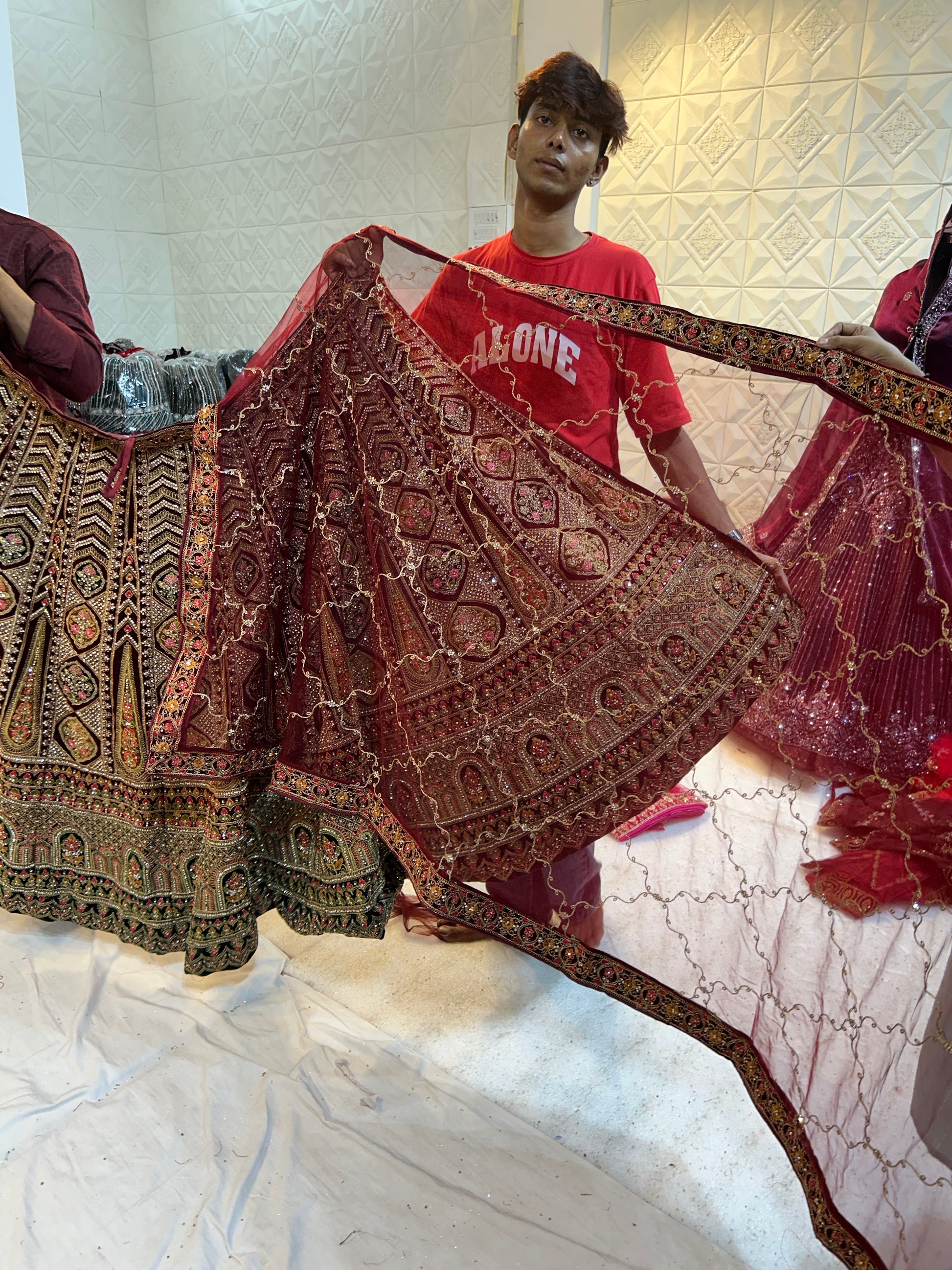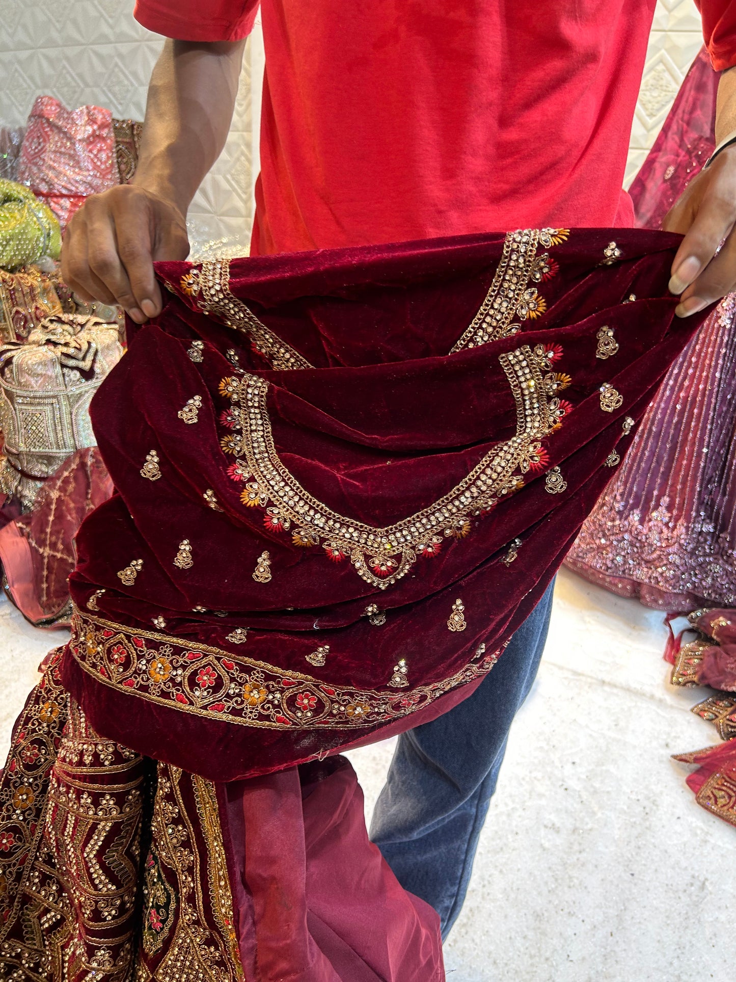Designer jhumka Maroon bridal lehenga ( happy customer)