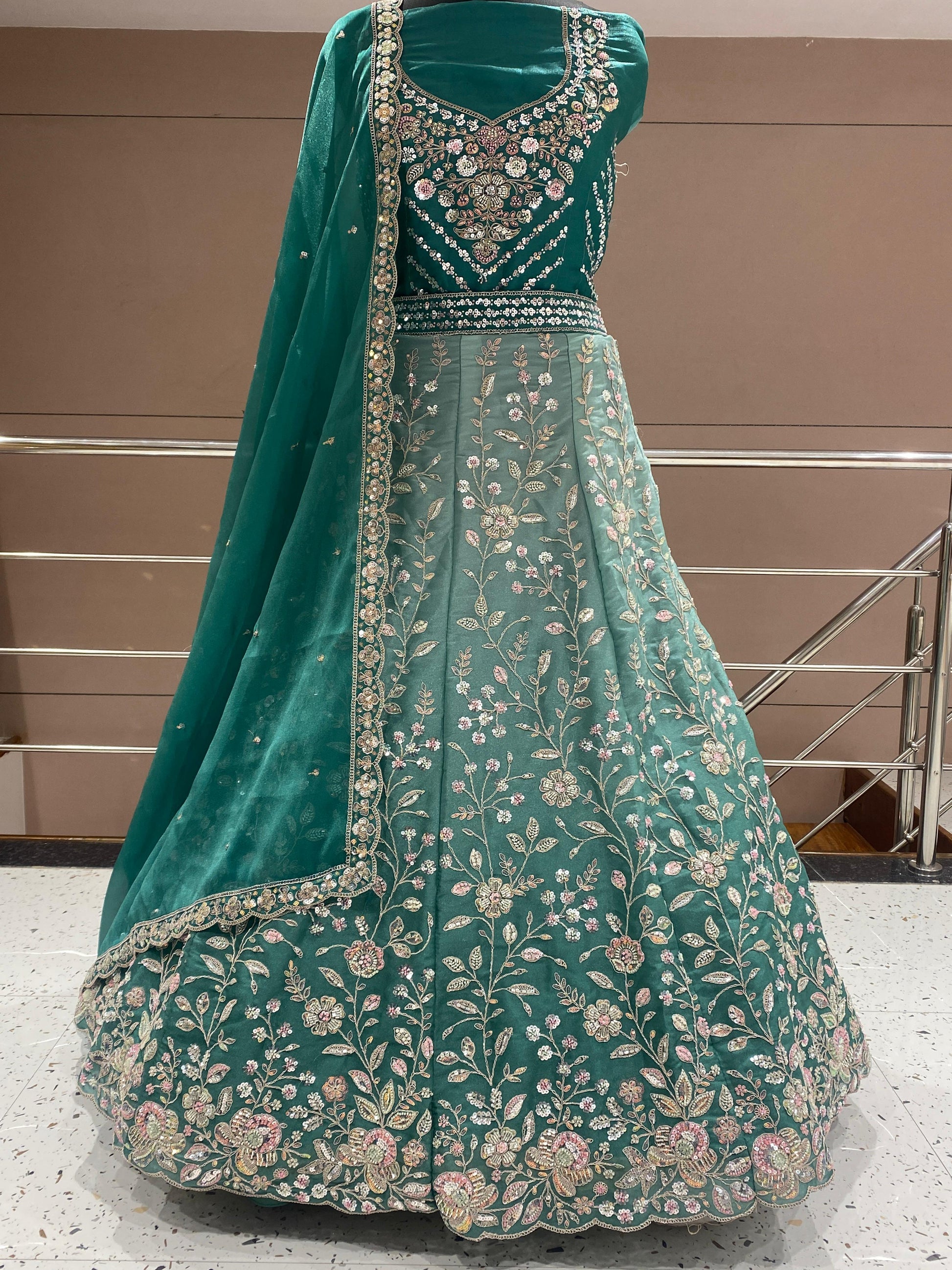 Attractive pista green peacock crop top Lehenga Happy Customer