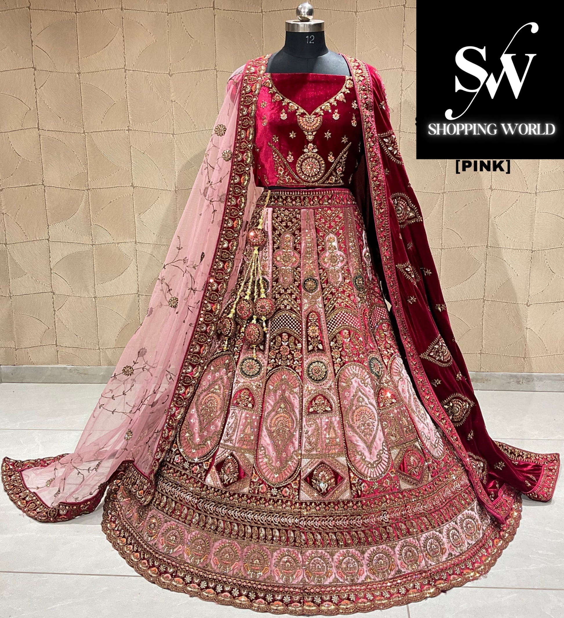 Good looking pink double duptta bridal lehenga