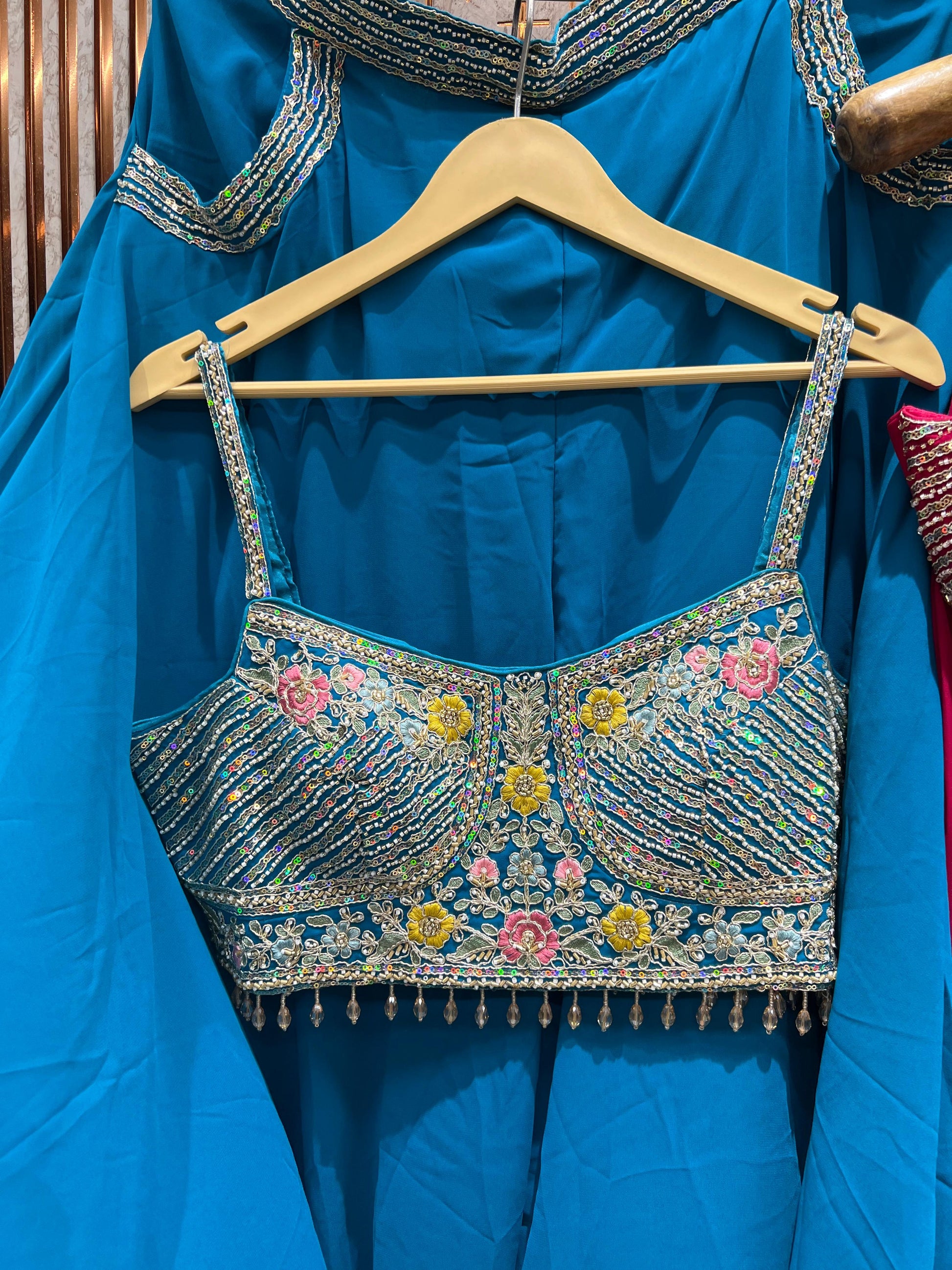 In 2025, pastel tones, floral embroidery, mirror work, and Indo-fusion layers are trending, often paired with coordinated safas and mojris
