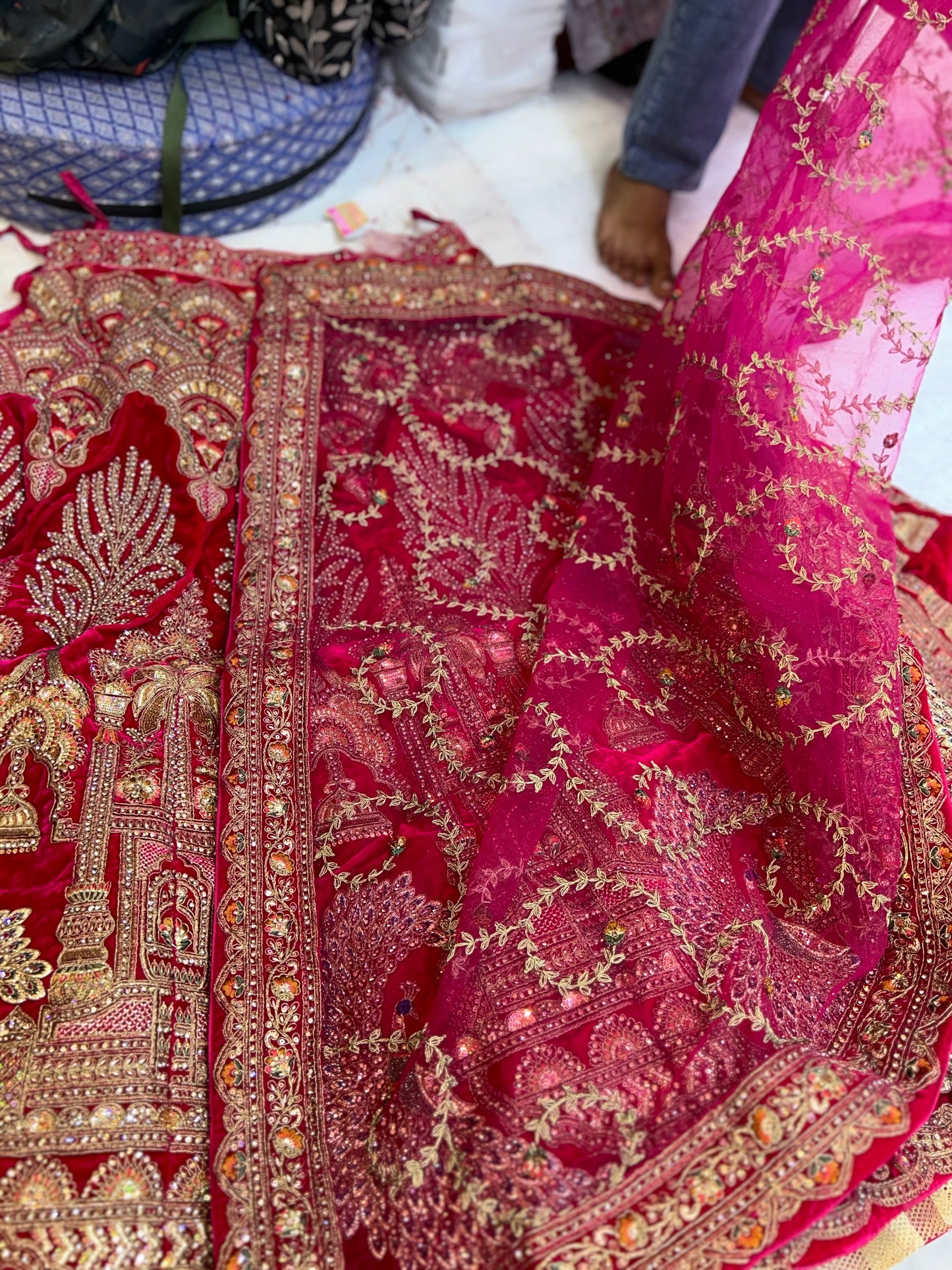 Royal Red Bridal Lehenga Double tail Dupatta with Dupatta happy customer