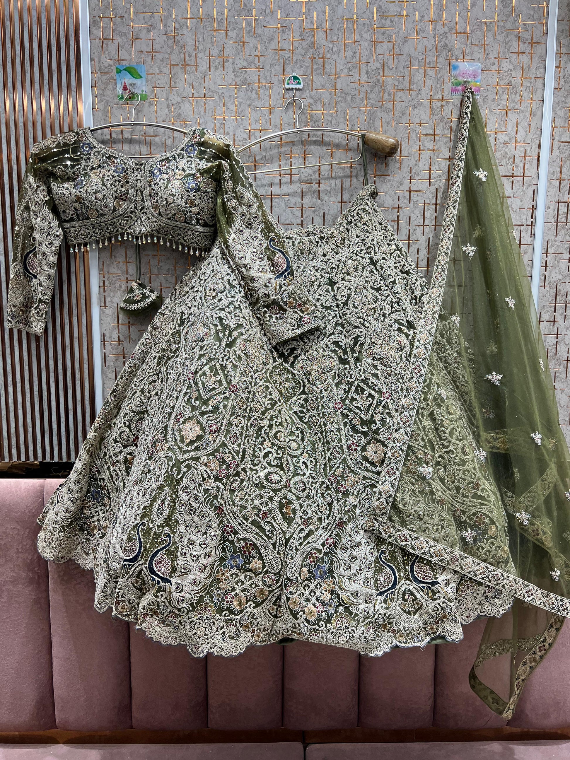 Attractive pista green peacock crop top Lehenga Happy Customer