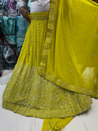 Discover elegance with our Designer Lehenga Collection, perfect for any occasion. These free-size lehengas are thoughtfully designed to accommodate all body types and can be customized to suit your unique style. Crafted to elevate your wardrobe, each lehenga set includes a semi-stitched skirt, unstitched blouse fabric (choli), and a matching chunni (dupatta), making it an ideal choice for weddings, festivals, and special celebrations.