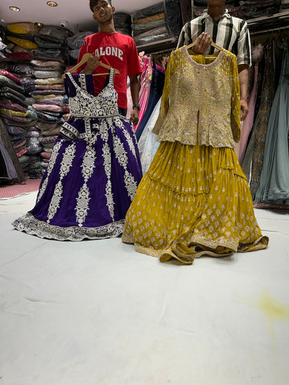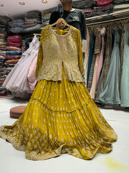Haldi mehendi Peplum yellow crop top lehenga