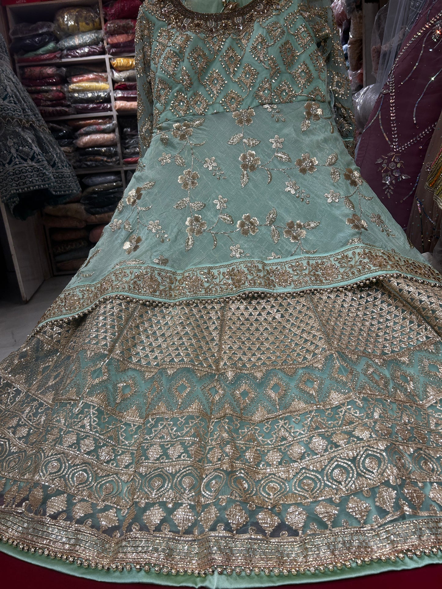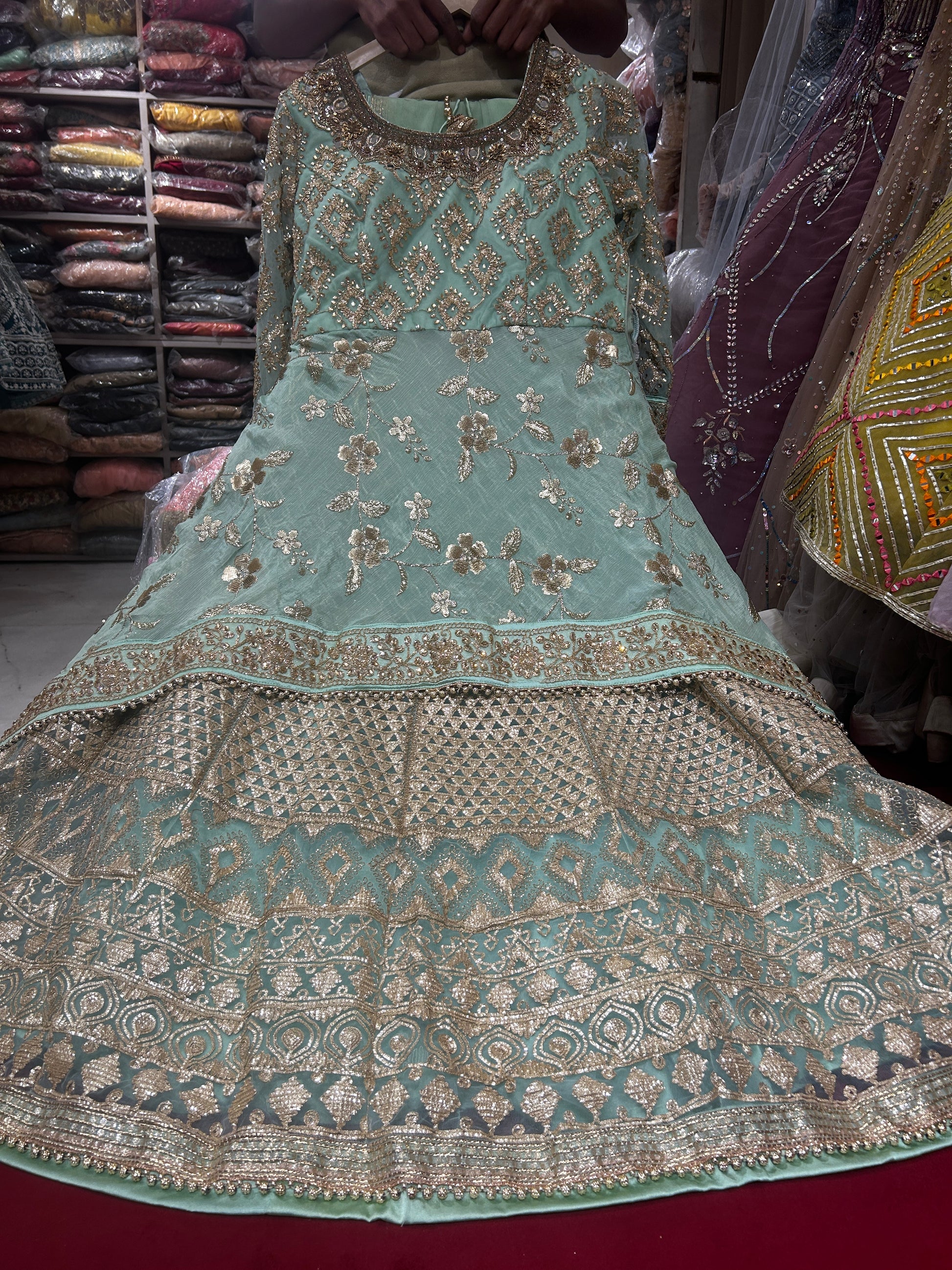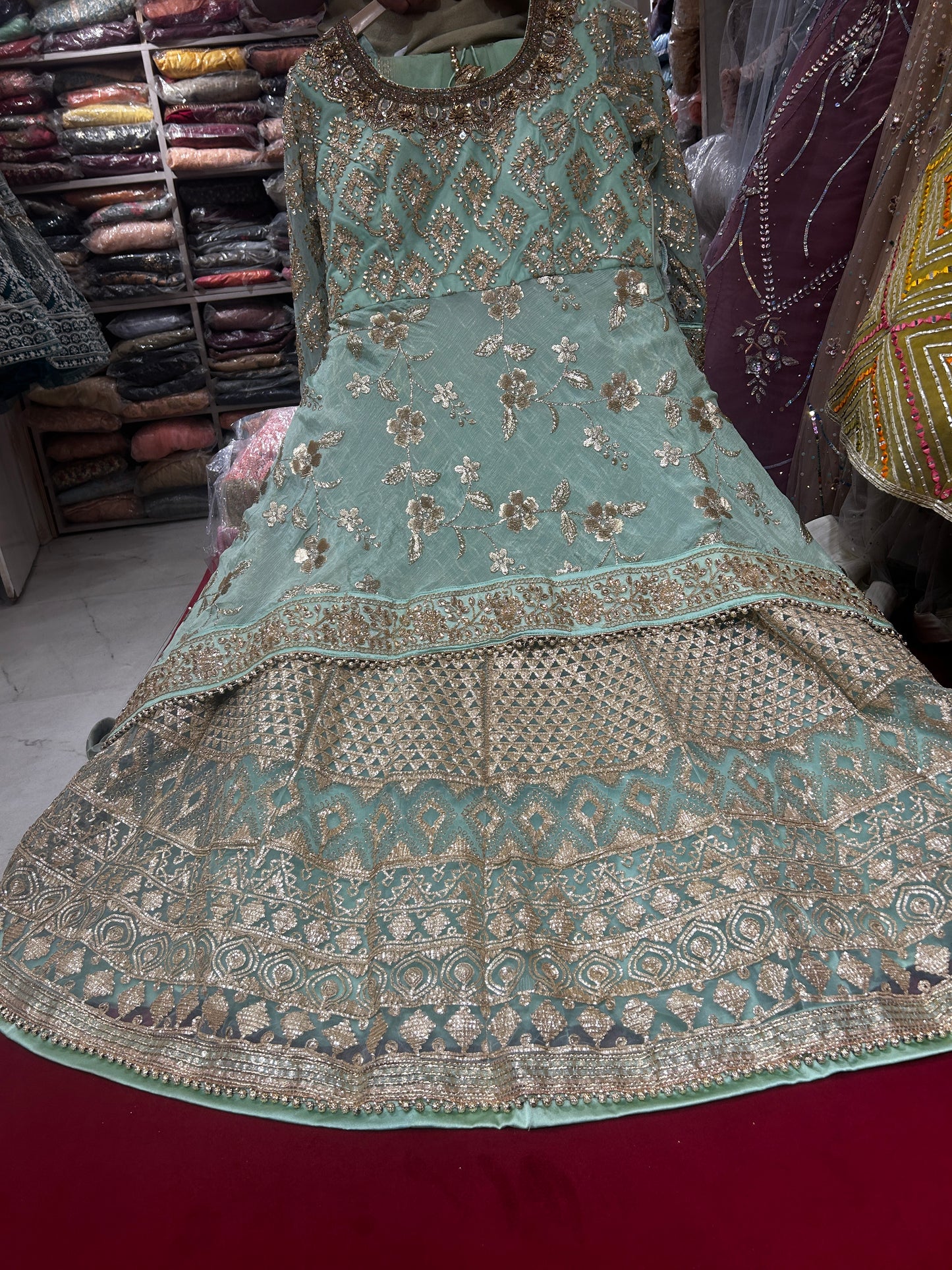 Attractive pista green peacock crop top Lehenga Happy Customer