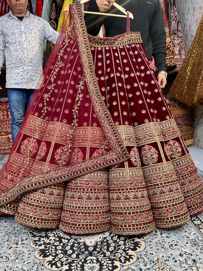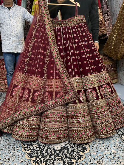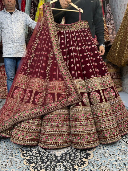 Heavy maroon ball bridal lehenga
