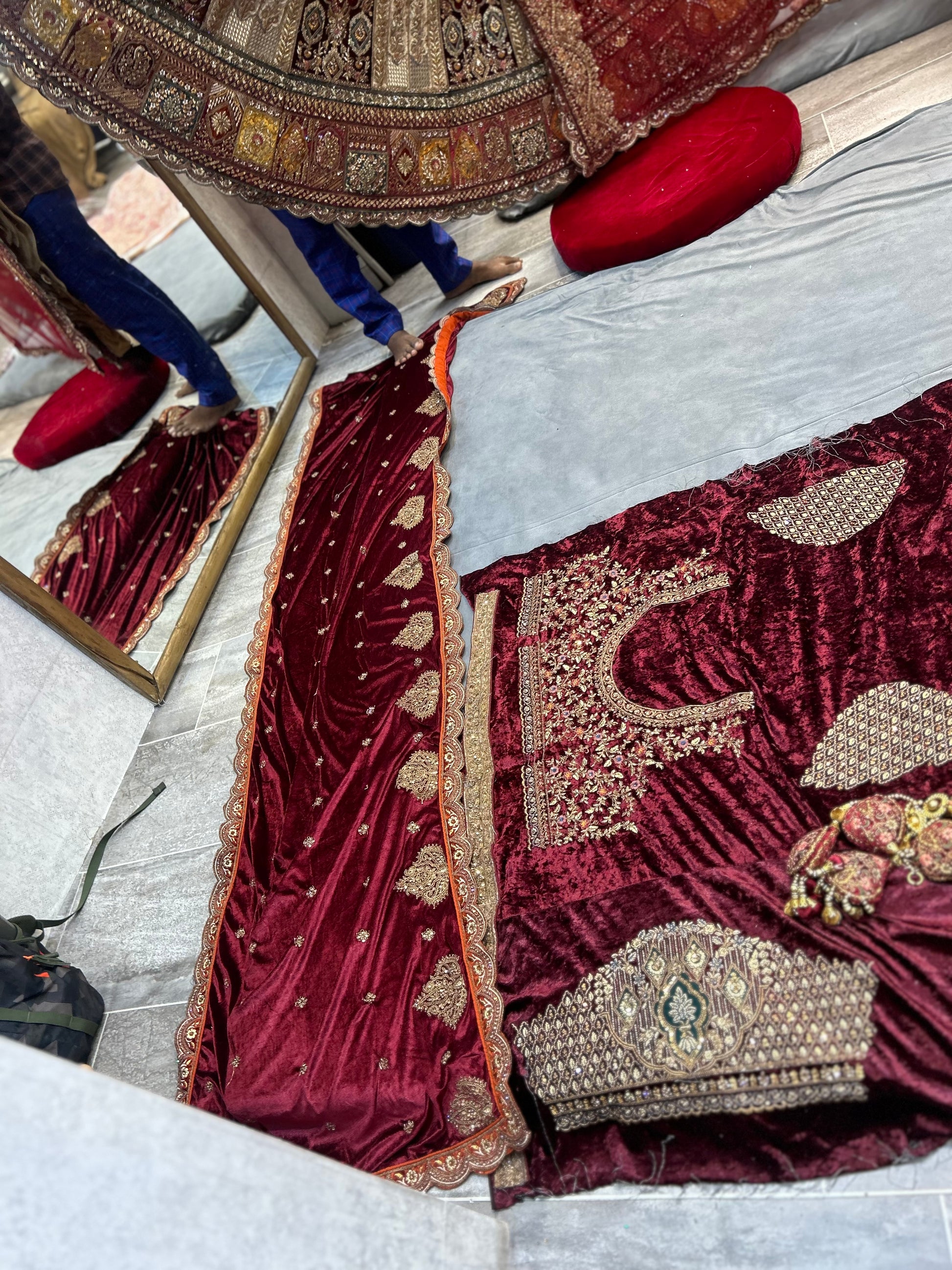 Designer jhumka Maroon bridal lehenga ( happy customer)