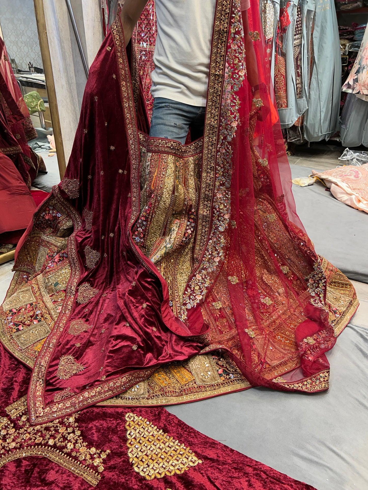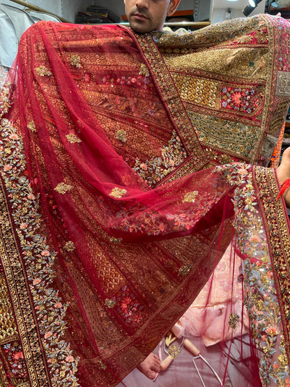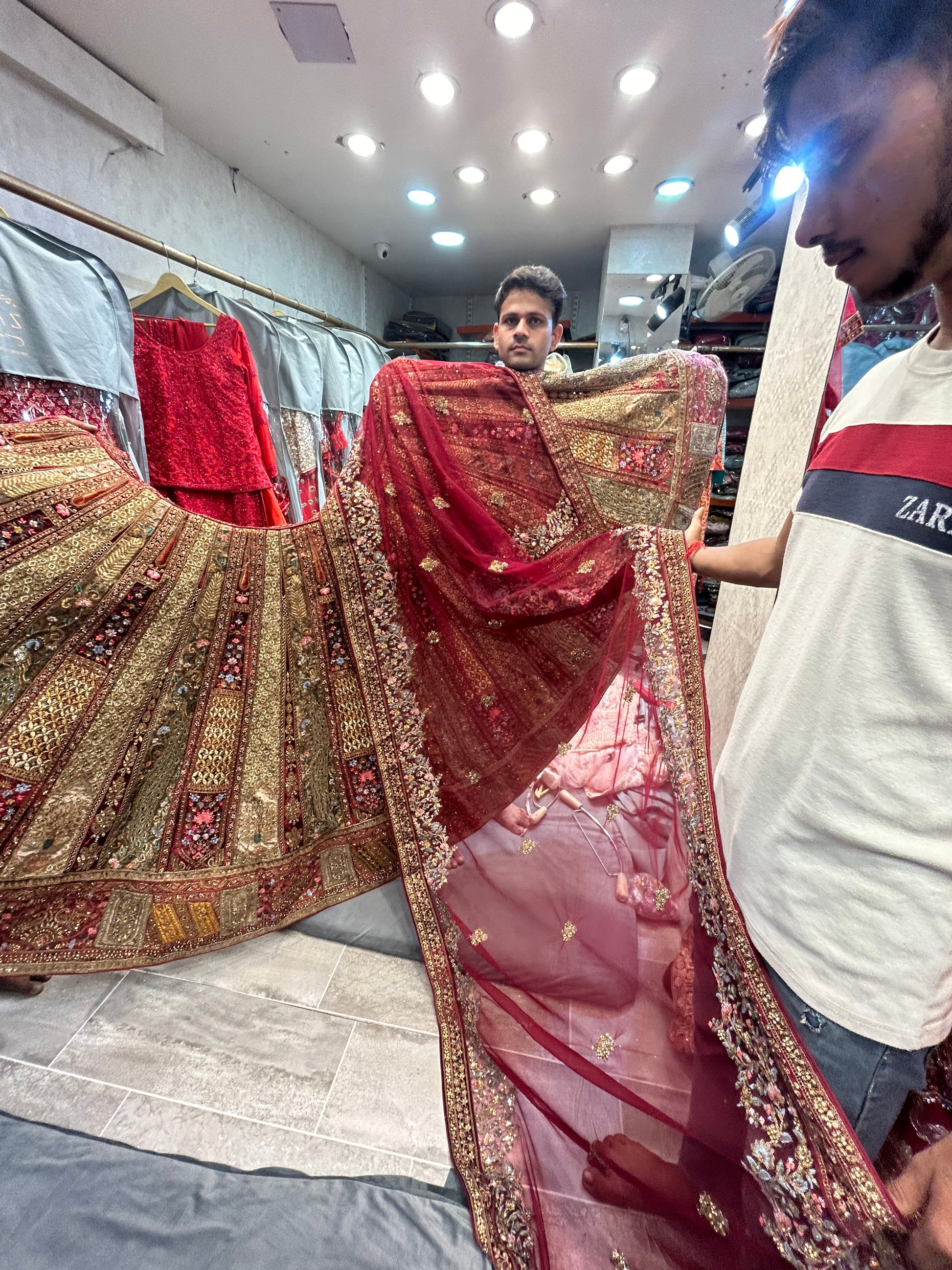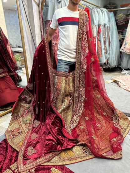 Royal Red Bridal Lehenga Double tail Dupatta with Dupatta happy customer