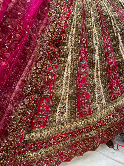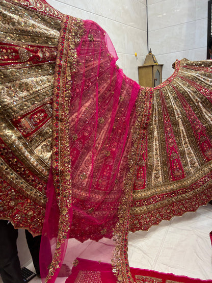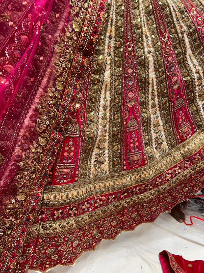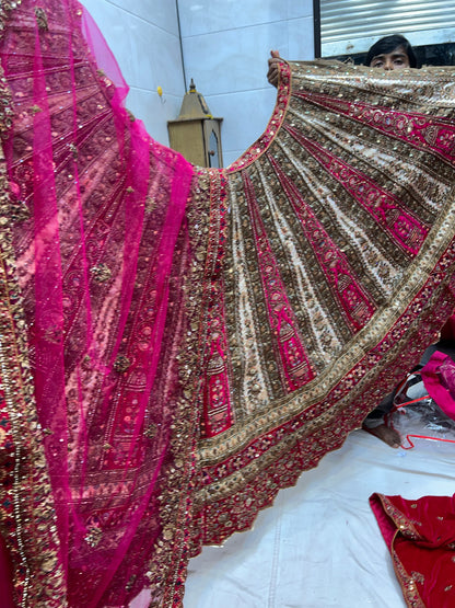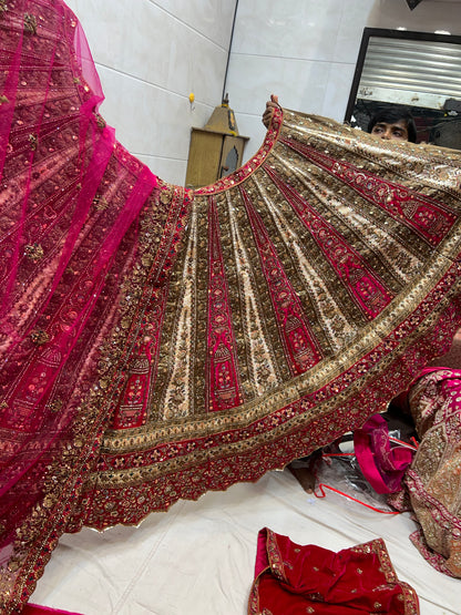 Heavy Rani Ivory pure handwork bridal Lehenga