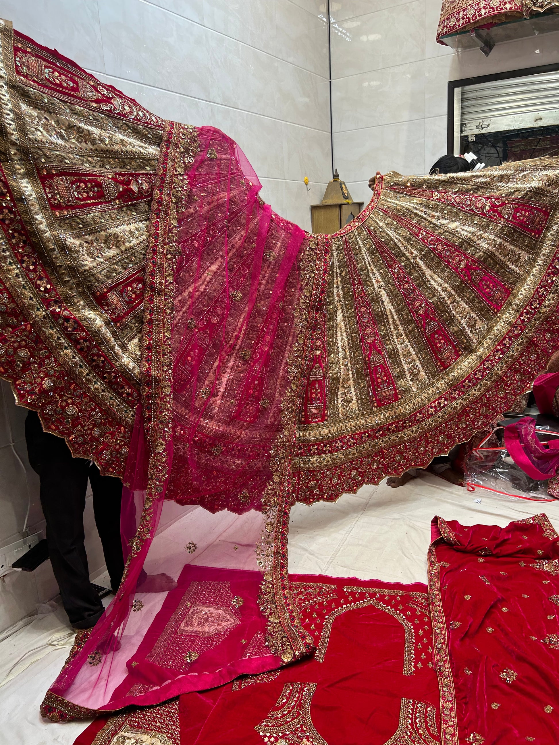 Royal Red Bridal Lehenga Double tail Dupatta with Dupatta happy customer