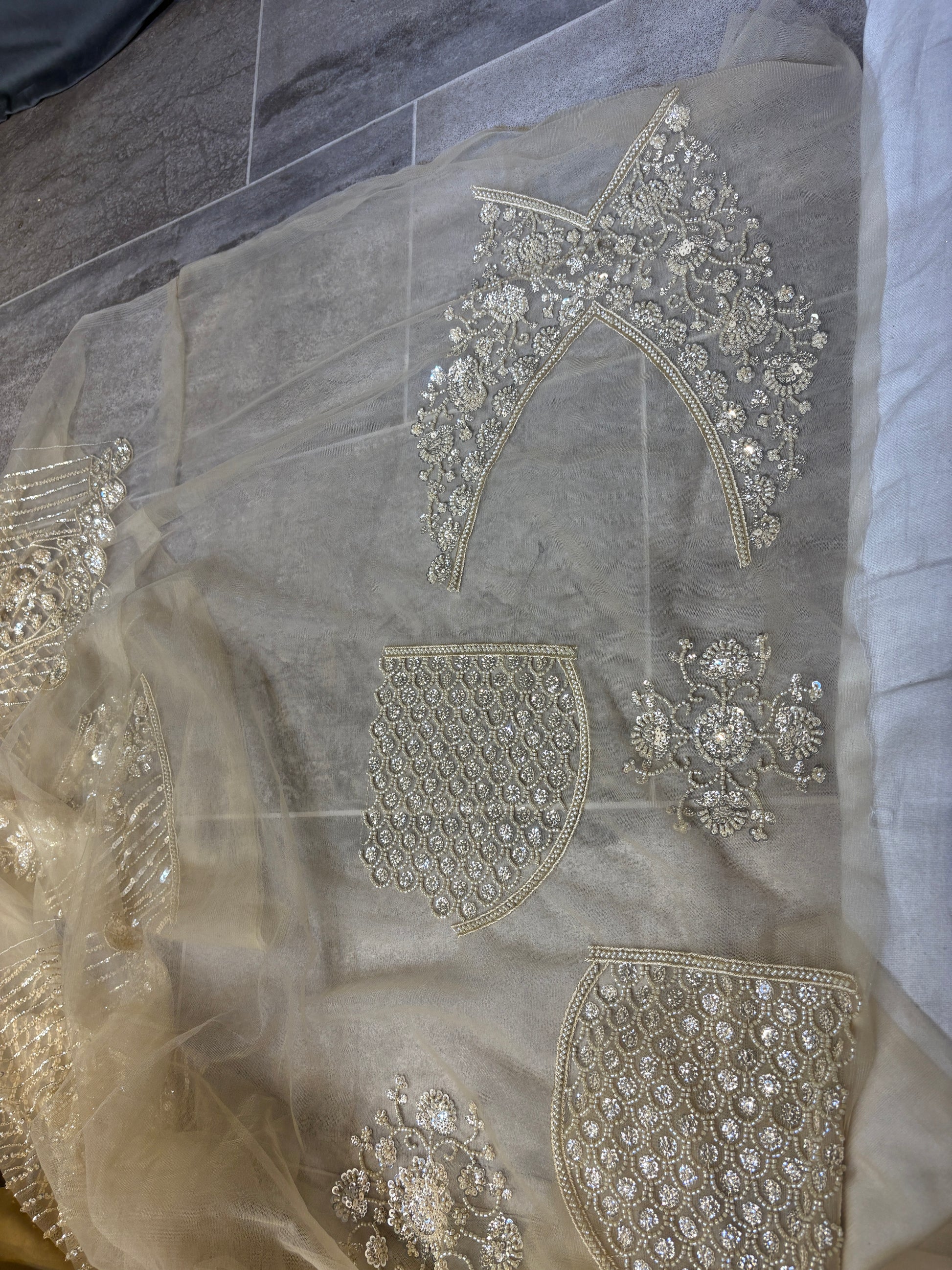 Yes, embroidery can be personalized! Add initials, traditional motifs, or custom patterns to match your wedding theme or personal style.